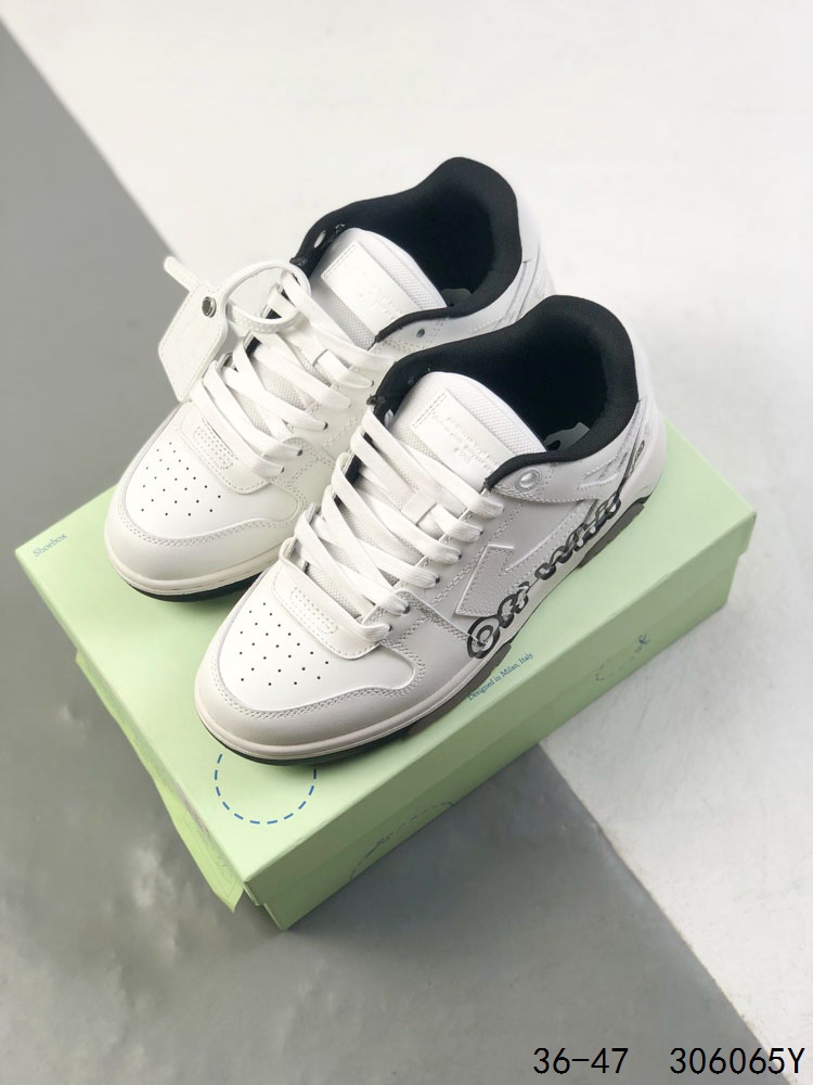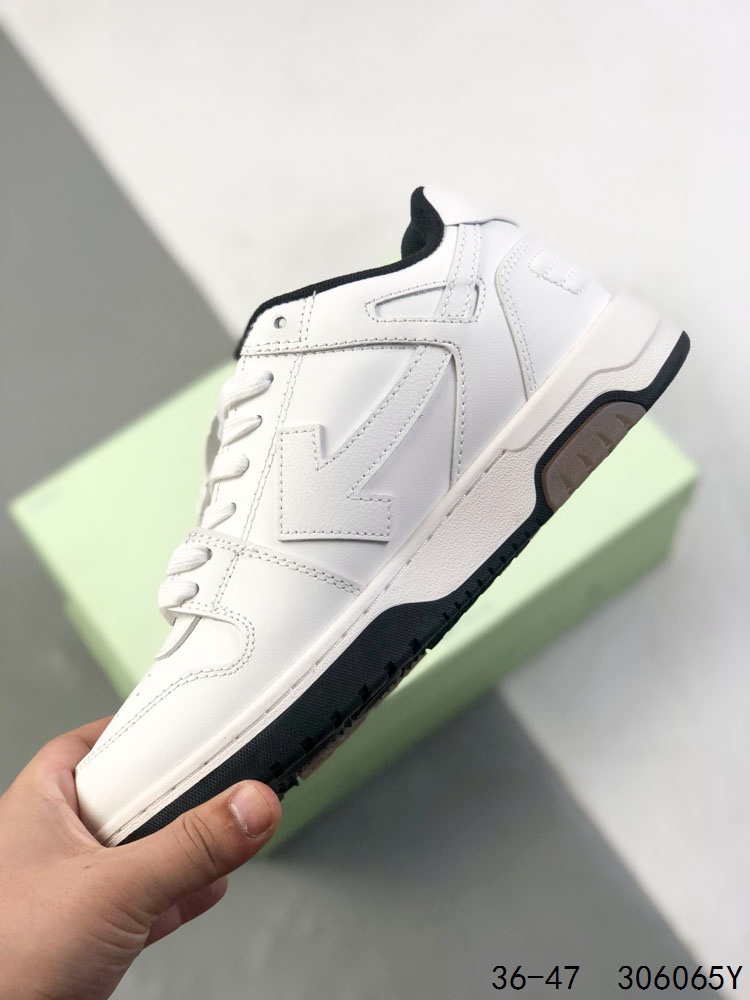 公司级✅当红美潮,设计师独立品牌Off-White™ c/o Virgil Abloh Out Of Office Low-top Leather OW联名 箭头OFF-White 重磅联名 Sneakers"OOO"复古百搭休闲运动板鞋 原楦型开发纸版#采用粒面头层小牛皮饰片#超软PU鞋垫+拼接去臭网布材质#全新开发橡胶耐磨鞋底低帮"Out of office"运动鞋,侧面为对角箭头图案,鞋跟处为Off-White™徽标,橡胶鞋底,白色系带鞋绳。Virgil Abloh——Off-White品牌创始人兼创意总监希望呈现一款既兼具二十世纪80年代与90年代的美感、又适宜日常穿着的网球鞋。于是“OUT OF OFFICE”运动鞋诞生了:低帮线条廓形,将街头的闲适、篮球的轻捷与跑步的力量绝妙融合。这款运动鞋拥有色彩鲜明的外底,半透明凝胶镶边,经典镂空鞋头与鞋面设计,螺纹针织鞋跟饰有徽标图案尺码:36-47