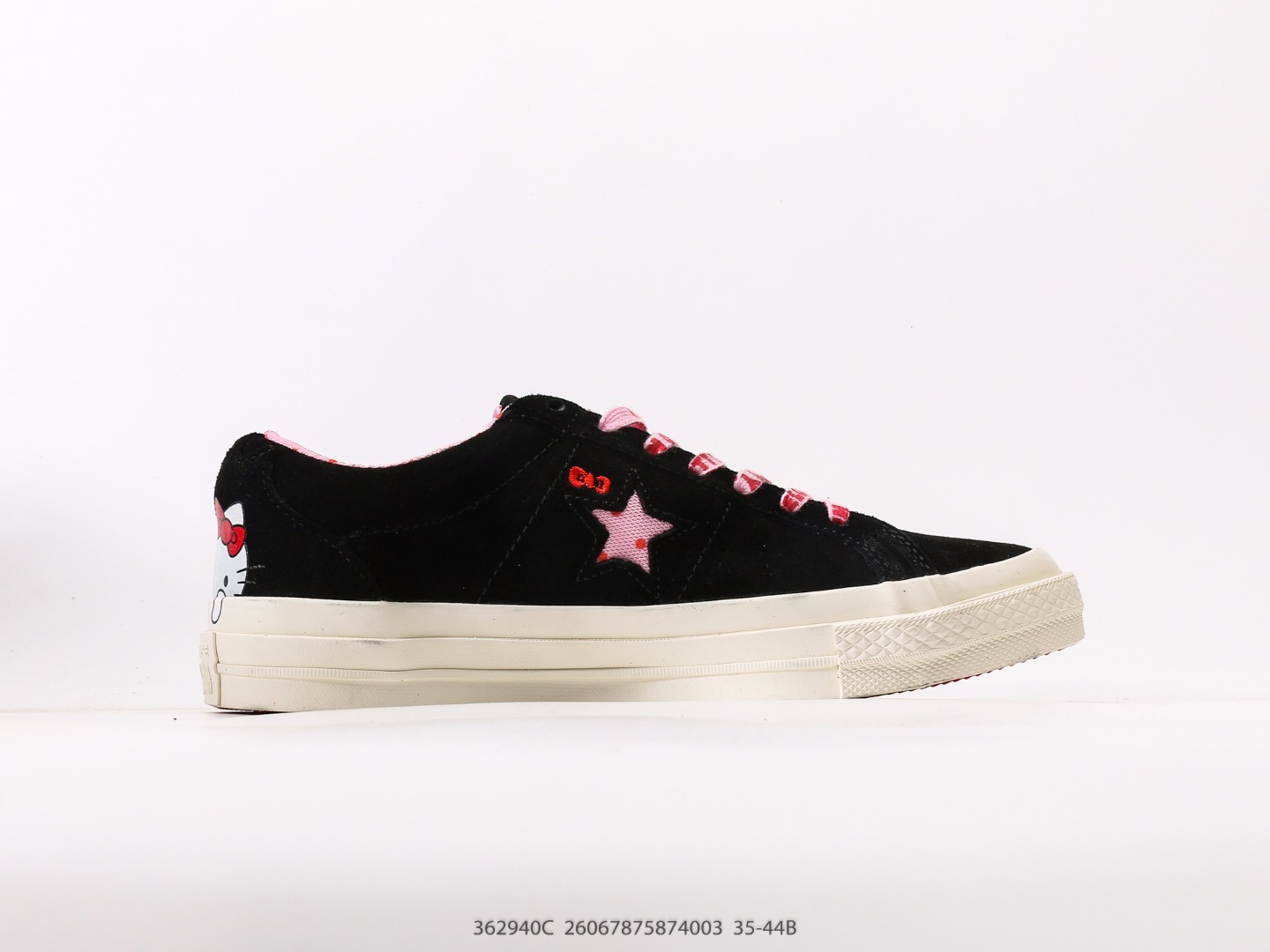 💰160 携手日本知名卡通 IP凯蒂猫《Hello Kitty》 x Converse One Star Suede LowBlack Pink一星古着系列经典低帮复古休闲百搭硫化板鞋“联名黑浅粉红凯蒂猫” 尺码:35 36 36.5 37 37.5 38 39 39.5 40 41 41.5 42 42.5 43 44 货号:362940C#26067875874003