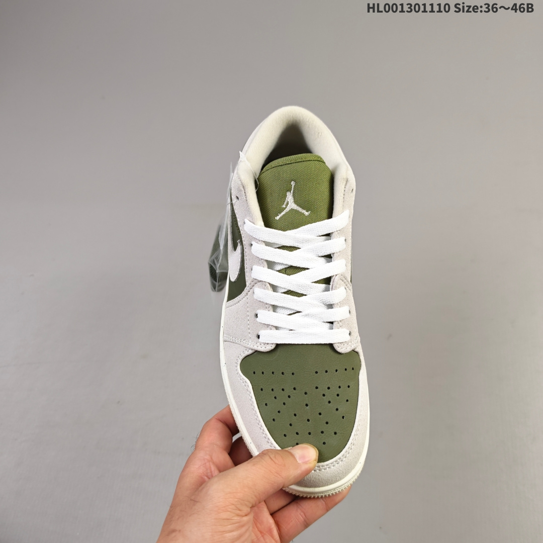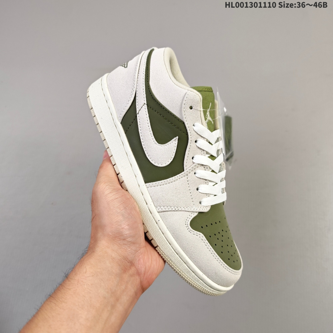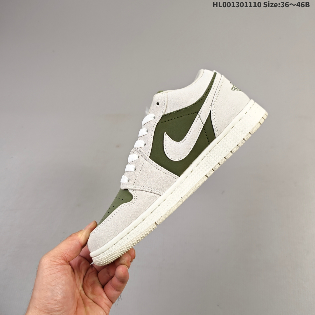 💰130 头层带半码 Air Jordan 1 Low "Medium Olive" 低帮 橄榄绿 AJ1 乔丹1代 aj1 乔1 低邦 灰绿色 男女同款 乔丹篮球鞋系列 鞋身整体采用土绿色翻毛皮打造,搭配浅灰色框架覆盖层,鞋头、中足及鞋跟处采用浅褐色调,打造出和谐统一的视觉效果;鞋身两侧Swoosh Logo采用浅灰色点缀,帆布鞋舌则赋予其不羁的粗犷气质,Jumpman Logo以浅灰色示人,鞋身深橄榄色的底色,彰显出经典的军事风范,而光滑的绒面革纹理则为其增添了几分柔和。后跟Wwings Logos则以橄榄绿缝线妆点,最后以带有泼墨的帆白色可回收中底搭配浅卡其色橡胶外底完善整体设计收尾。 货号:HV4089-201(2025版) 尺码:36 36.5 37.5 38 38.5 39 40 40.5 41 42 42.5 43 44 44.5 45 46HL001301110 Size:36~46B