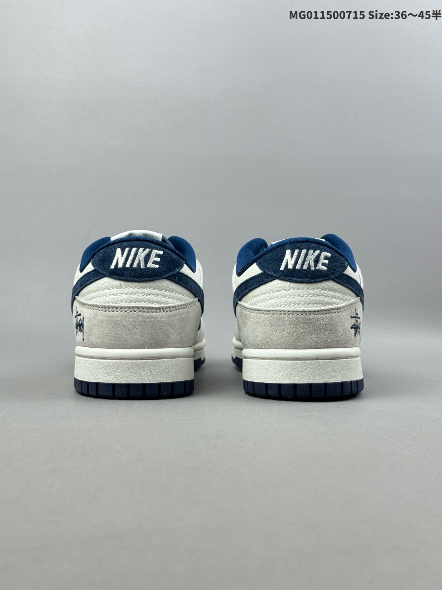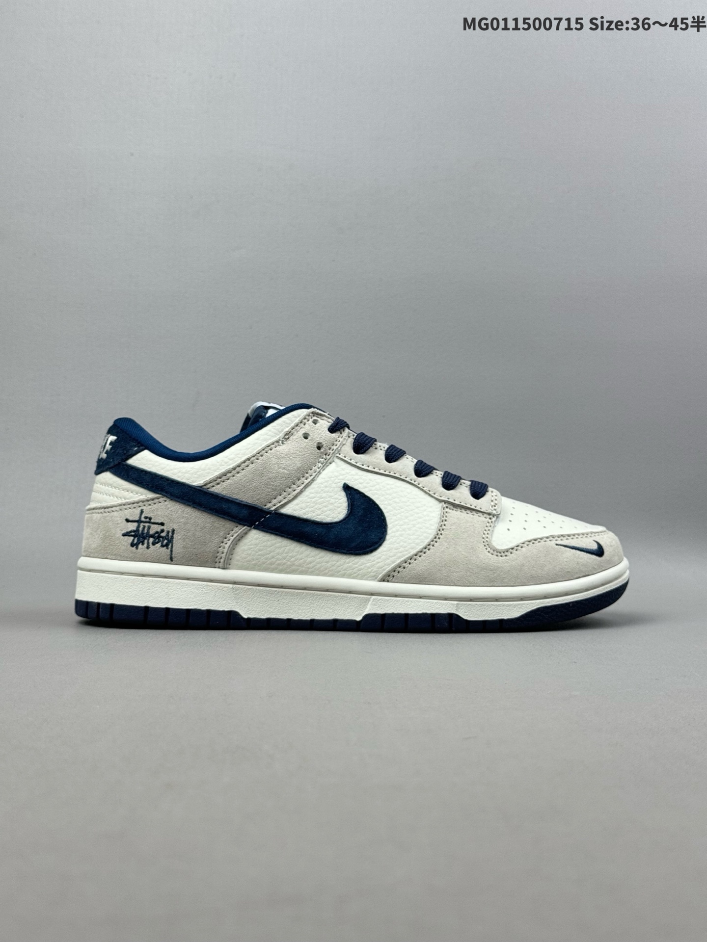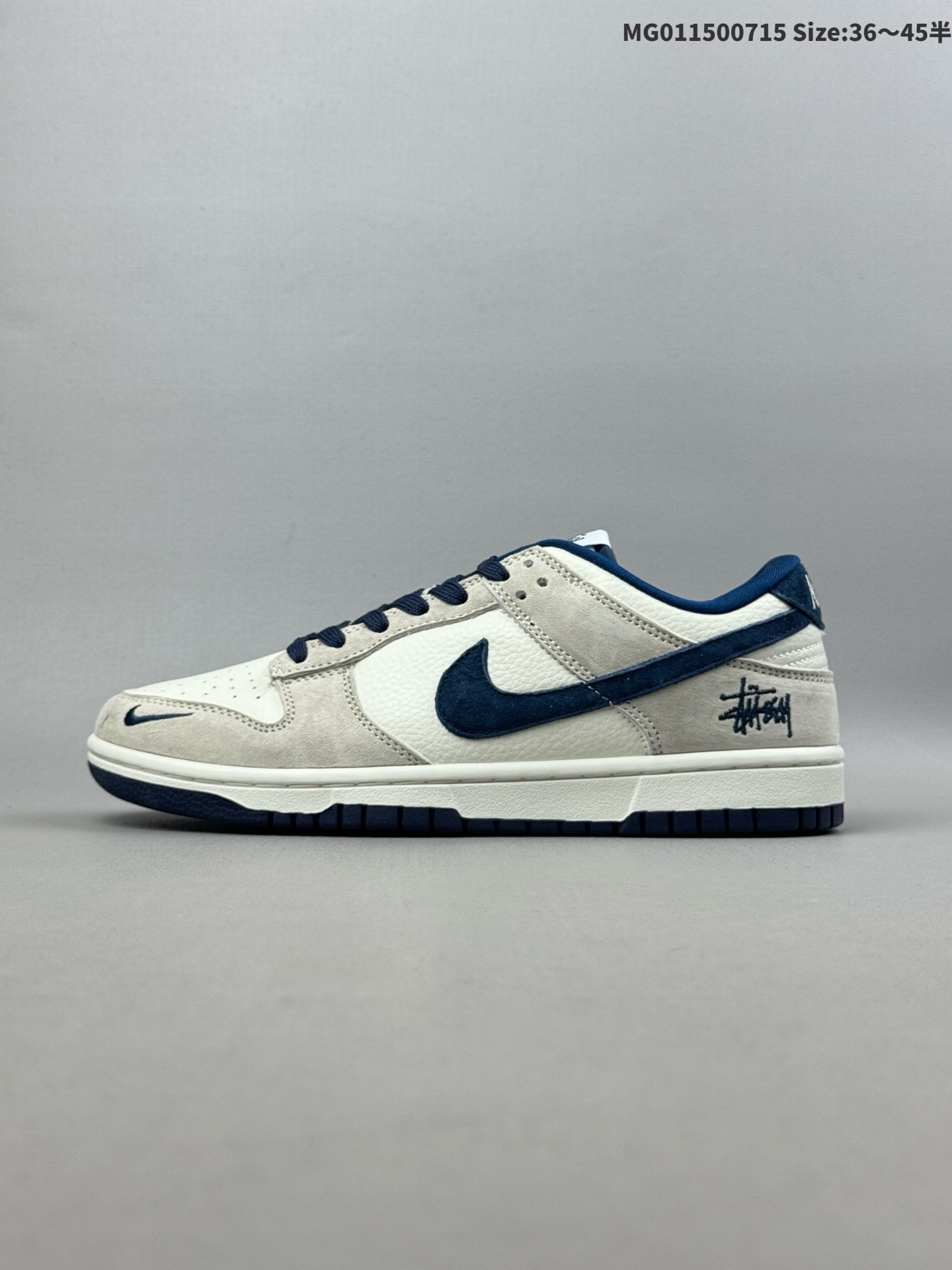 💰150(36-45半) [定制球鞋] Stussy x Nike Dunk SB Low 斯图西 x 耐克 SB 低帮 灰白蓝 鞋身整体以米白色皮革打造,搭配浅灰色麂皮框架覆盖层,使鞋款十分百搭,鞋舌绣标上以Stussy标志呈现,鞋身两侧的Swoosbh Logo和后跟饰片均采用蓝色麂皮点缀,鞋舌是网眼布材料,增强了透气性,后跟Nike字样以白色刺绣妆点,鞋头处侧边迷你Nike Swoosh Logo采用蓝色点缀,后跟绣有蓝色Stussym刺绣,彰显联名身份;最后以米白色中底搭配蓝色外底完善整体设计收尾。 货号:DQ1098-360 货号:DQ1098-339 尺码:36 36.5 37.5 38 38.5 39 40 40.5 41 42 42.5 43 44 44.5 45 ID:MG011500715 Size:36~45半