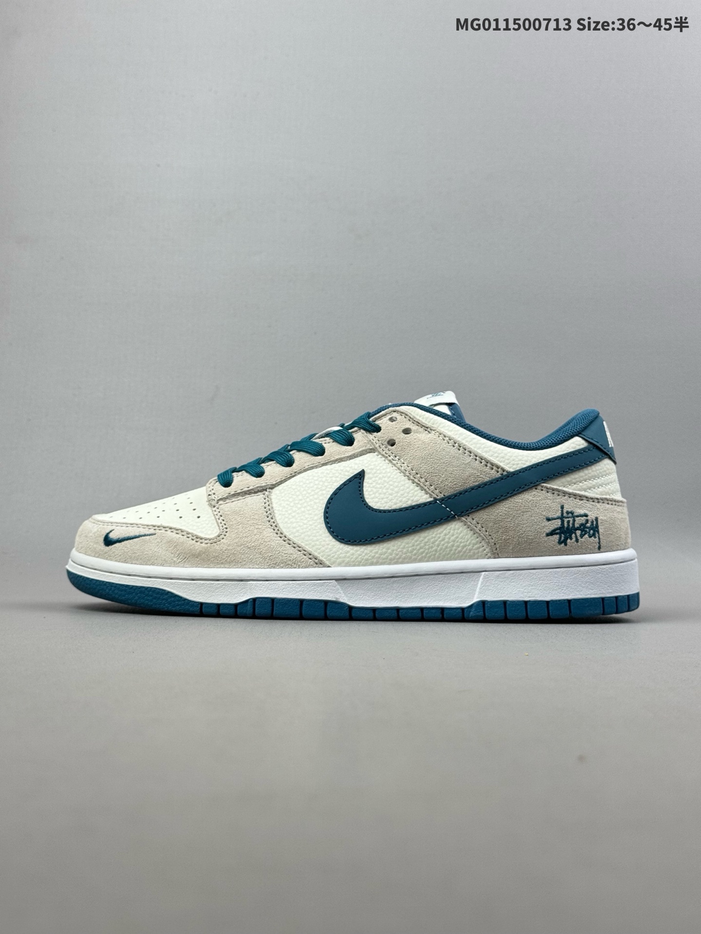 💰150(36-45半) [定制球鞋] Stussy x Nike Dunk SB Low 斯图西 x 耐克 SB 低帮 灰白蓝 鞋身整体以米白色皮革打造,搭配灰色麂皮框架覆盖层,使鞋款十分百搭,鞋舌绣标上以Stussy字样呈现,鞋身两侧的Swoosh Logo采用蓝色点缀,后跟饰片辅以蓝色制作,鞋舌是网眼布材料,增强了透气性,后跟Nike字样以白色刺绣妆点,鞋头处Nike Swoosbh Logo蓝色呈现,后跟印有Stussym字样,彰显联名身份;最后以米白色中底搭配蓝色橡胶外底完善整体设计收尾。 货号:DQ1098-341 尺码:36 36.5 37.5 38 38.5 39 40 40.5 41 42 42.5 43 44 44.5 45 ID:MG011500714 Size:36~45半
