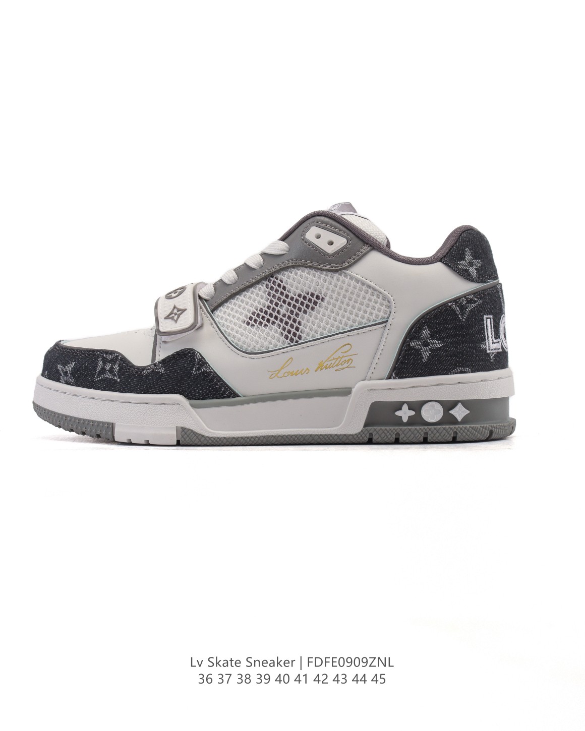 🈴 【帝王版】LV扣带 路易威登 Louis Vuitton LV路易威登板鞋 时尚运动鞋潮厚底增高男女鞋。舒适防滑底和百搭性霸屏整个时尚娱乐圈,细节调整完美主义!采用柔软皮革帆布拼接鞋面,独家开模大底, 侧边采用3D打印标志性Logo 尽显贵族时尚气息,配带正品全套包装。全新LV路易威登Louis vuitton Trainer Sneaker Low 休闲运动文化百搭板鞋。 类型:男女鞋 尺码:36-46