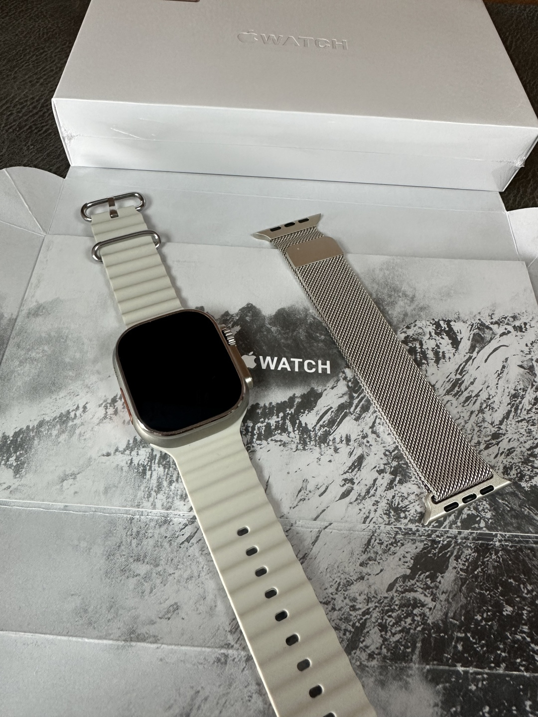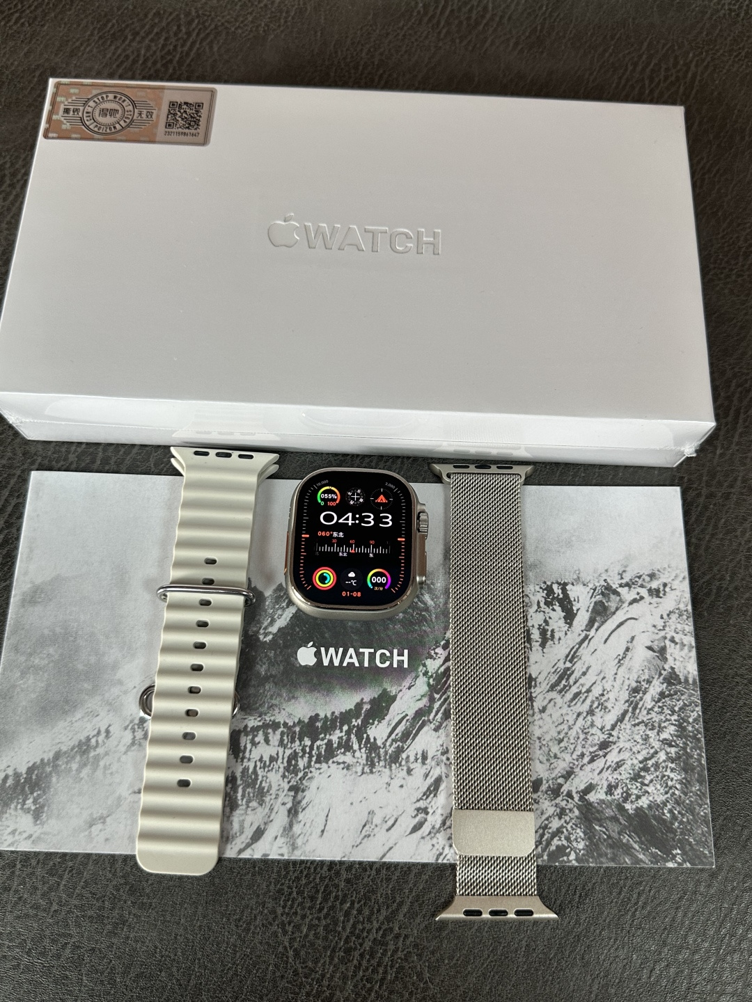 💰300 苹果Apple Watch Ultra2手表毒版‼️ 全新升级共享网络 市面最顶配版本 可使用手机网络 独立完成下载最新壁纸 下载小游戏 不需通过软件下载 全新腕表喜马拉雅 支持离线听小说 可通过语言助手回复微信消息 带本地相册 电子书 熄屏录音功能 独立连接蓝牙耳机 实现运动不需带手机 49mm表盘 90赫兹高刷 采用AMOLED屏幕 外观细节包装全部对标原装 区别市面 带翻译器功能 可翻译多国家语言 市面最顶配 自带应用商城 支持超百款应用下载 后台会不断更新 全网唯一款可下载软件 带双支付功能 可绑定微信/支付宝支付 不带手机可离线支付 百城公交乘车码 录音功能 录音回放 单蓝牙连接 不需要连接俩个蓝牙 nfc功能 灵动岛功能动画 全球首创AI机器人 可回答任何问题 非常强大 人工智能生成表盘 一句话生成你想要的表盘 支持下载本地音乐离线播放 百度导航2.0 GPT人工智能2.0 领先全行的真正智能AI创作小帮手 内置4GB内存 12.24小时语音备忘录 支持百款以上表盘下载安装 支持手表主题自定义 不仅表盘可自定义 主页菜单壁纸也支持自定义 超长续航能力 正常使用2-3天无压力 待机10天以上 国际时钟 可添加多个国家时间 原装天线圈 同步官网 真心率监测 真血压 血氧 呼吸 睡眠 压力 梅脱 血糖 呼吸频道 真指南针 天气预报 闹钟 信息提示 查找手机 日历 小游戏 计时器 计算器 秒针 短视频遥控 名片夹 收款码 活动记录 几十款运动功能 功能齐全 满足日常更多使用需求 使用更方便 超多新功能 引领市场 真正遥遥领先 领先行业标准 下单标配:专用磁吸无线充-标配白色海洋表带-赠送表带(款式可选)-原装包装-专用毒盒‼️ 售后服务:不刮花 不撕屏面后背膜 不要有佩戴痕迹 不影响二次销售15天内可退换,保修三个月,人为因素导致除外‼️