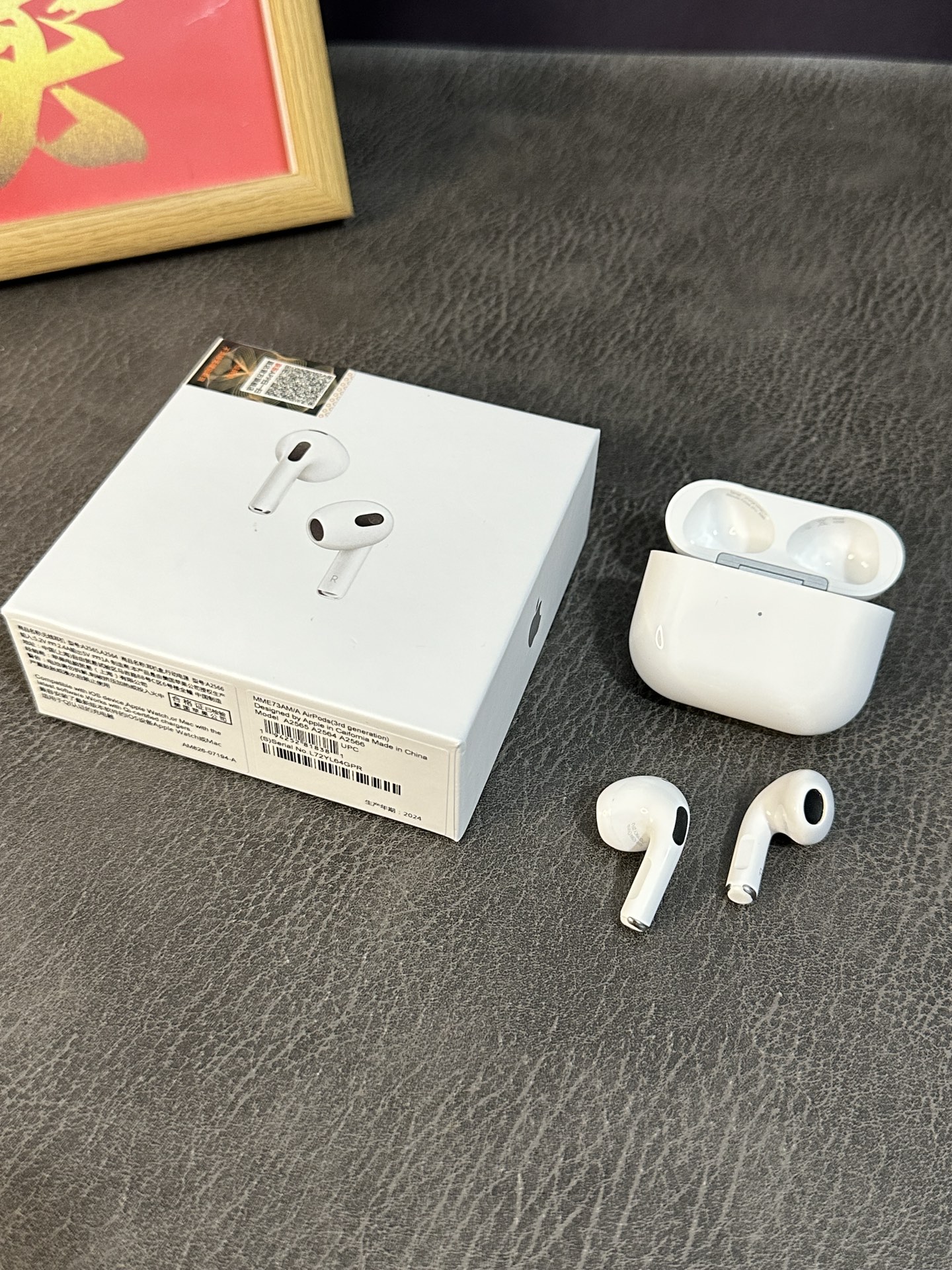 💰110 AirPods3(简称四代)苹果耳机京东版‼️ 还原原装一样外观 原厂壳 灰白指示灯罩 美纹缝 入耳检测 触压切歌 接听电话 三真电量 弹窗连接 蓝牙定位 蓝牙改名 本机序列号 无线充电功能 二次自动连接 通话/听音乐可达4小时左右 超长续航 还原上下撕拉封口包装不包膜 同步专柜原装包装 下单配套 官方标配耳机➕保护壳➕发票➕京东打包盒 售后:耳机/包装不刮花 不影响二次销售支持退换 保修三个月(人为除外)