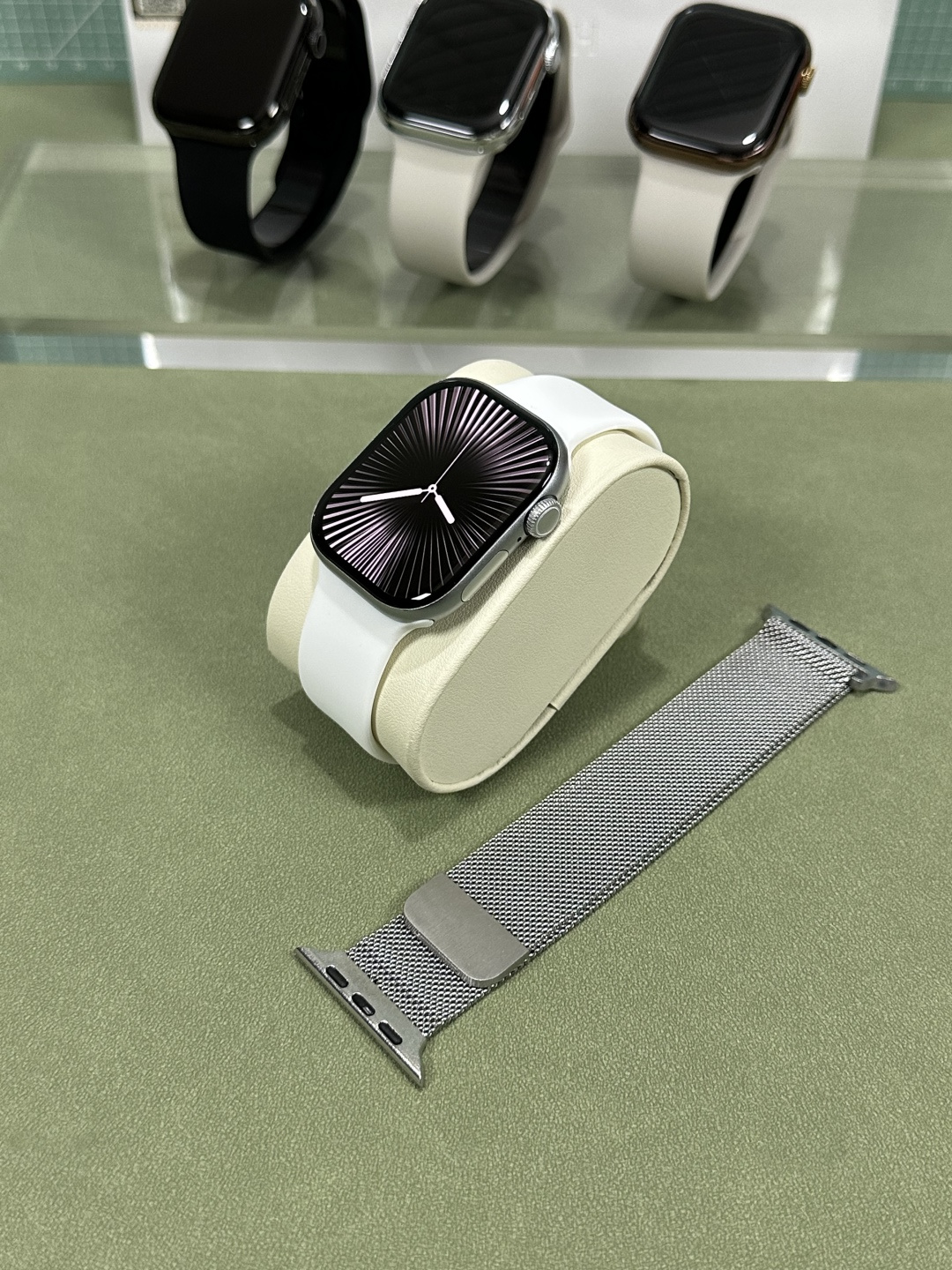 新增配色 46mm磨砂银‼️💰280 苹果最新发布Apple Watch Series10京东版‼️ S10全新升级9.3毫米超薄机身 46mm表盘 还原原装 采用LTPO原装屏幕 120HZ超高刷新率 钛金属材质 边框后盖机身一体成型 白色旋钮线圈 双蜂窝扬声器 后盖带天线圈 市面最稳最高版本 细节全部对标原装 升级3D视觉动效 重力感应IU界面 超多功能 微信支付宝双支付 离线支付 本地相册 电子书 录音 本地音乐 可独立连接蓝牙耳机 健身运动不带手机 非常方便 功能流畅度秒杀市面所有版本 NFC门禁功能 百度导航 应用市场 可下载超多小游戏 实用工具 触控手势接电话 AI智能表盘 主题自定义 可换背景照片 换表盘 百城乘车码 超多功能 灵动岛 熄屏壁纸 抬手亮屏 24小时语音备忘录 心率监测 体能训练 健身记录 运动记录 睡眠检测 血氧 血压 压力 天气 闹钟 梅脱 日历 计时器 计算机 秒表 指南针 通讯录 语音助手 翻译软件 信息提示等超多功能 标配:无线充电线 手表 硅胶表带 额外赠送表带 说明书 原装包装 专用打包盒 售后要求:外观d不磨损 屏幕膜不撕过可退换‼️ 售后保修三个月