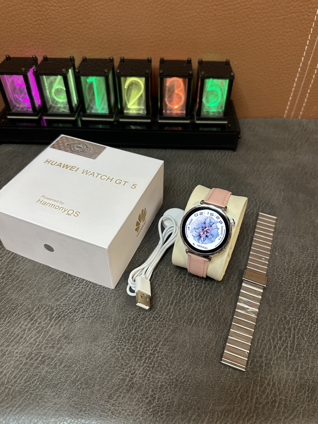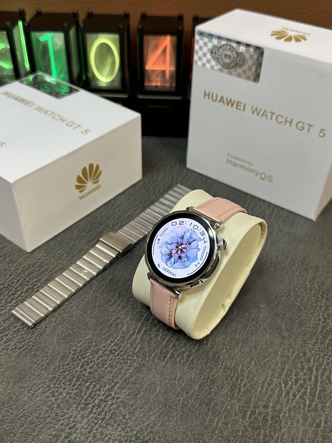 新款上新💰260 HUAWEI 华为WATCH GT5 mini 女款手表 原装华为包装 独家现货更新 41mm表盘 女款表盘 瑞昱8763VP芯片 高刷屏 一键连接 1.32寸真实AMOLED显示屏 4Gb内存+256MB内存 带本地音乐 高德地图 电子书功能 录音功能 3D UI表盘 2.5D视觉动图 指南针 本地相册100张以上照片 支持蓝牙通话 270mAh大电池 超低功耗 接收短信 带支付宝支付,支持离线支付 真实心率监测 血压 血氧功能 带nfc门禁功能 带抬手亮屏 息屏时钟 生活助手 床头灯、闹钟、计算机等功能❗️ 记步功能 女性健康 睡眠检测 压力检测 呼吸 梅脱 带语音助手 可通过语音助手转换发文字信息 自带三款小游戏 摇一摇拍照控制 天气预报推送 日历 运动检测等功能 该有的都有‼️ 颜色:银色 金色 下单配三表带 皮带➕钢带➕胶带 标配无线充电器 说明书‼️ 售后:手表后背膜不撕 手表不刮花不影响二次销售15天内支持退换 保修三个月 刮花影响二次销售只保修‼️