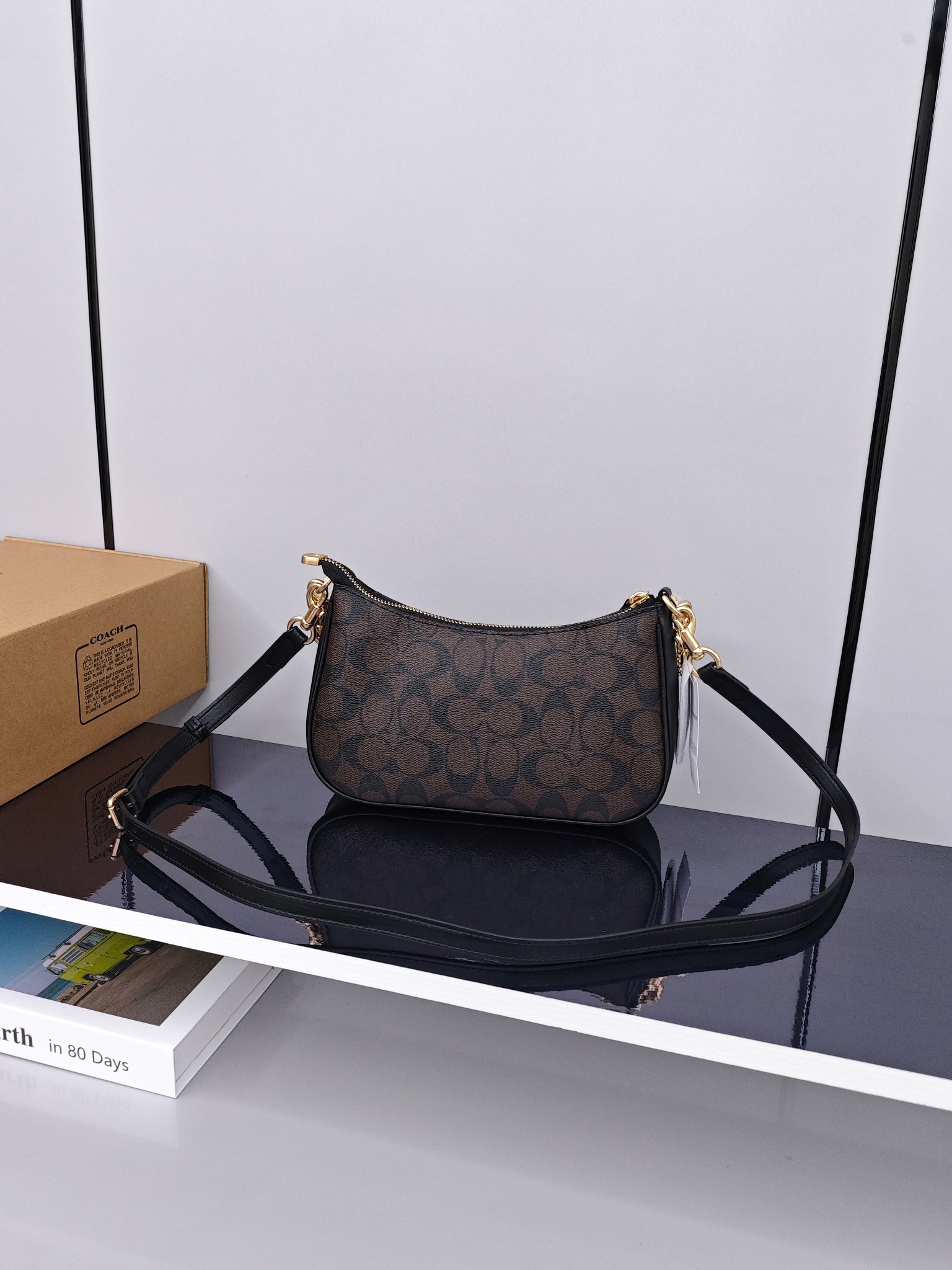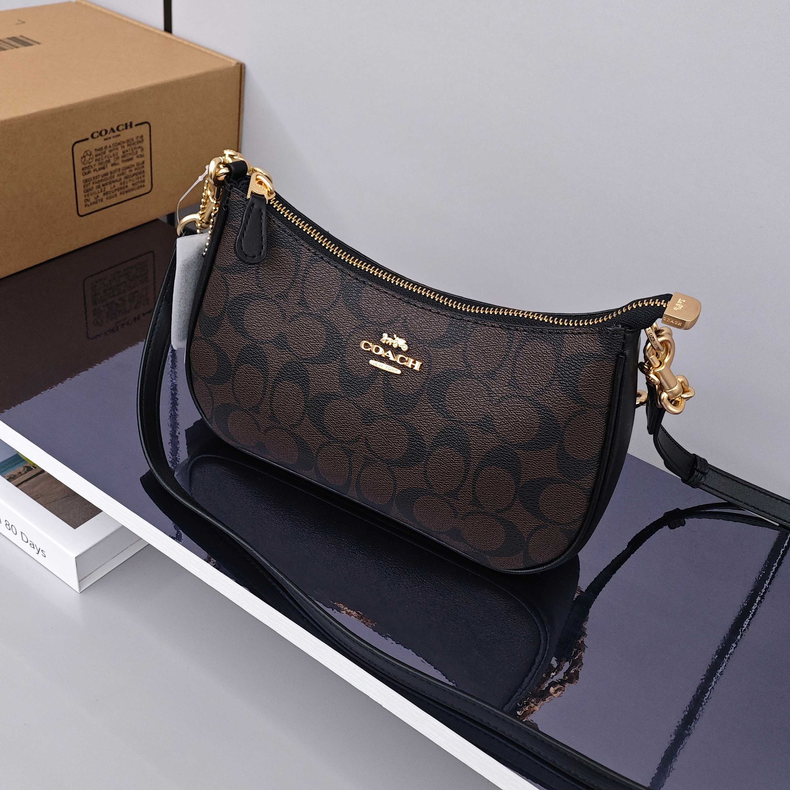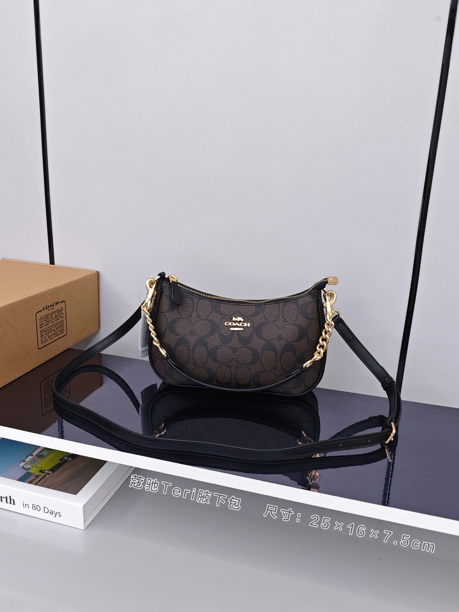 蔻驰Teri腋下包💰200 尺寸:25×16×7.5cm 特点:简约时尚复古,四季百搭款。 方式:拉链式开合,内部空间可放下大屏手机等日常随身物品,配有长肩带可腋下背,斜挎背。