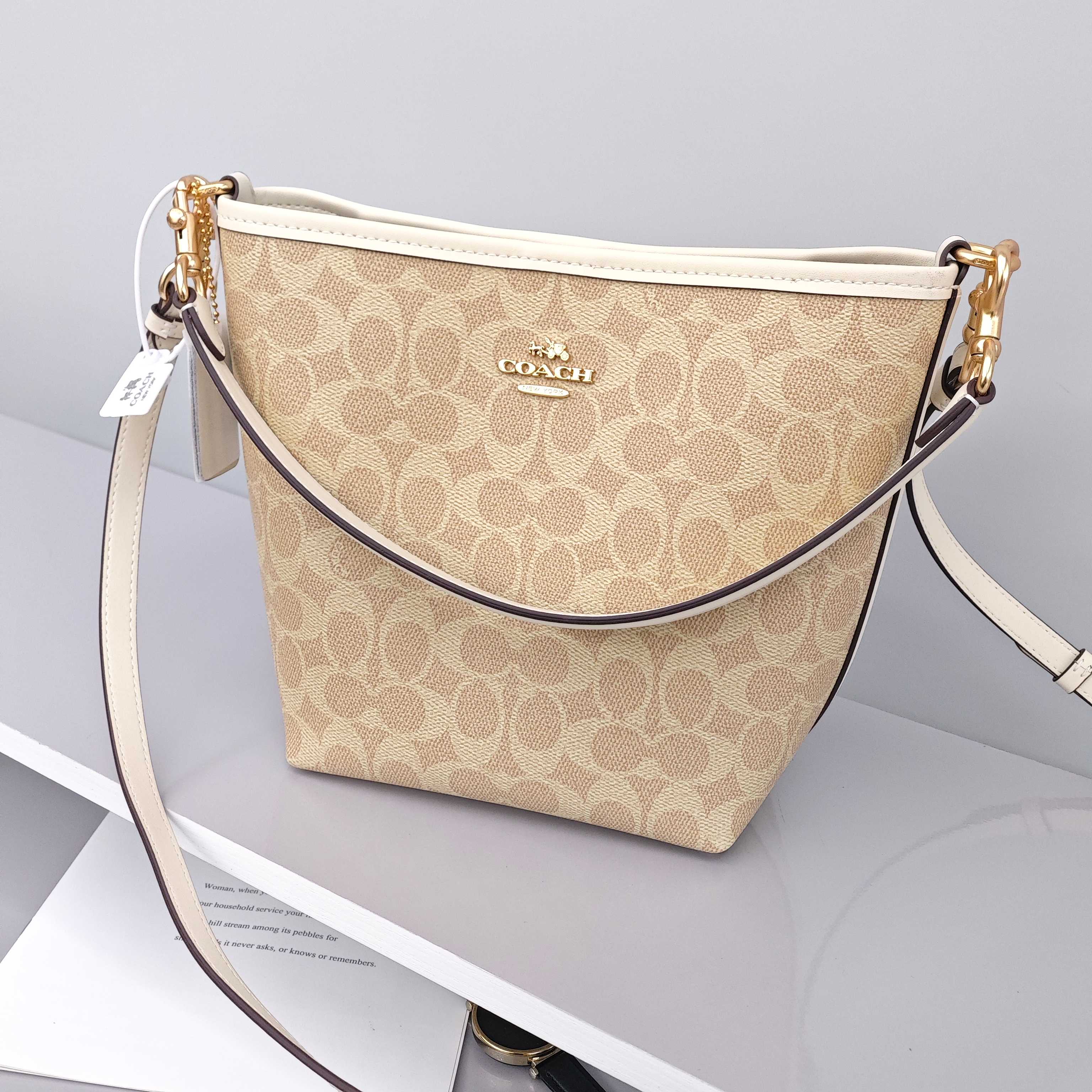 蔻驰City17水桶包💰260 尺寸:21×17×12cm 特点:能装的通勤包,轻便简约。 方式:吸磁扣开合,内部设有拉链口袋,空间非常宽敞,配有两条带子,均可拆卸,可手提可斜挎背。