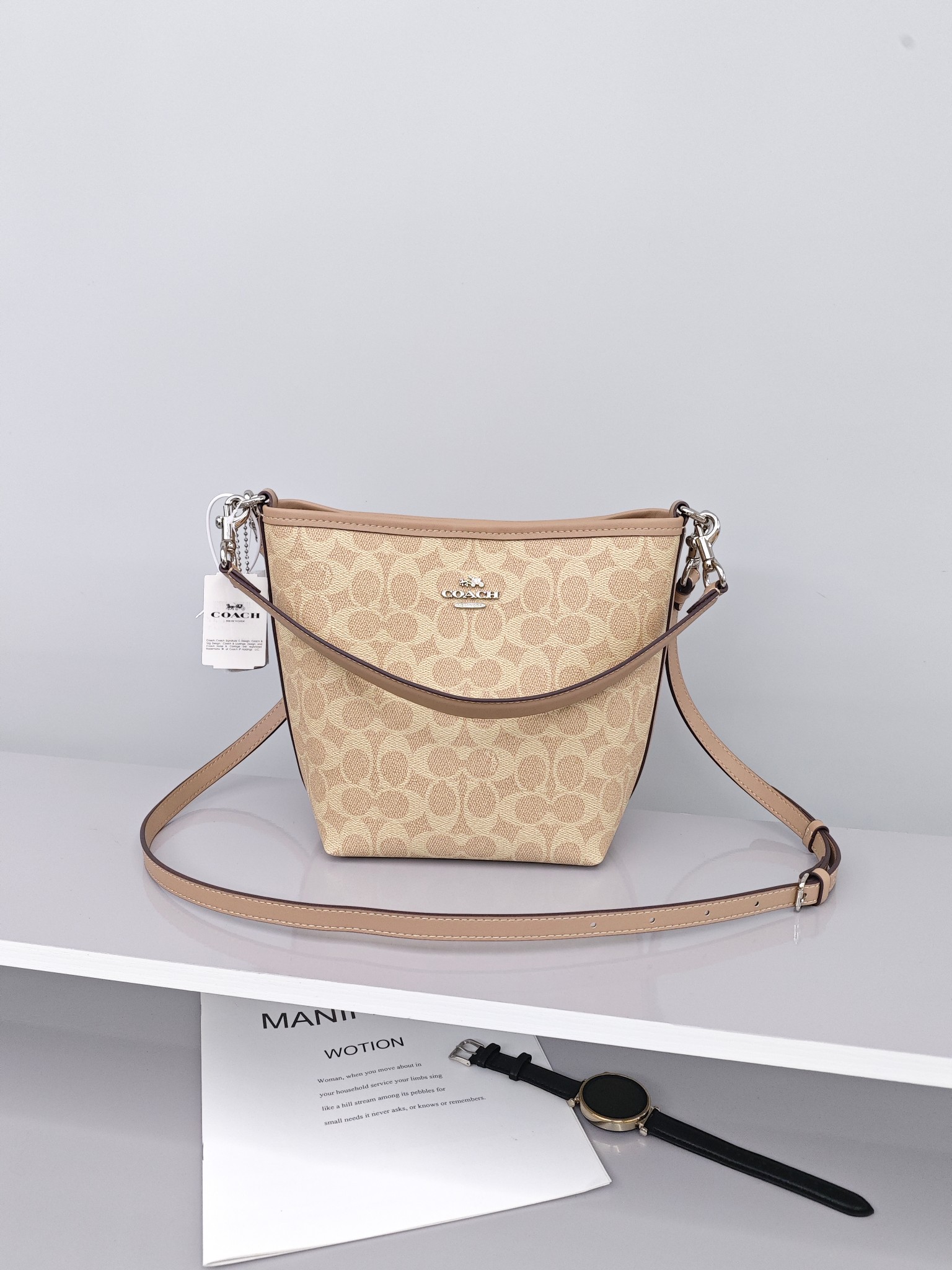 蔻驰City17水桶包💰260 尺寸:21×17×12cm 特点:能装的通勤包,轻便简约。 方式:吸磁扣开合,内部设有拉链口袋,空间非常宽敞,配有两条带子,均可拆卸,可手提可斜挎背。