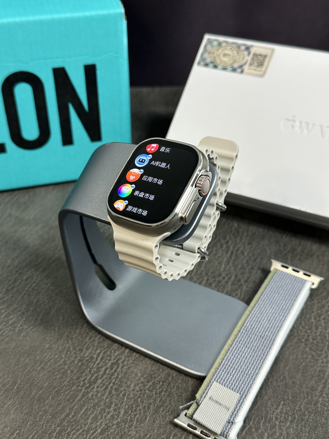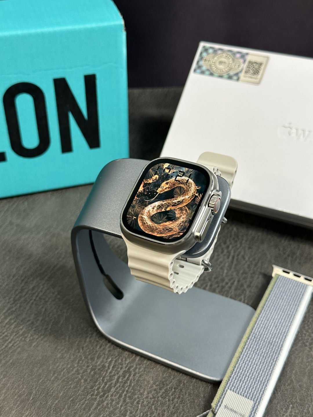 蛇年限定款🐍💰280 Apple Watch Ultra2智能手表‼️ 升级共享网络‼️可共享手机网络 升级喜马拉雅听书 可离线听小说 离线下载表盘壁纸 可通过语言助手回复微信消息 本地相册 电子书 单独连接蓝牙耳机 等超多实用功能 49mm表盘 90赫兹高刷 采用AMOLED屏幕 带翻译器功能 可翻译多国家语言 全行业首创 带应用商城 支持超百款应用下载 后台将不断更新 全网唯一款可下载软件 双指互点手势操作功能 同步原装 独家双支付 可绑定微信/支付宝支付 不带手机可离线支付 区别市面通货毒版单支付 百城公交乘车码 录音功能 录音回放 单蓝牙连接 不需要连接俩个蓝牙 nfc功能 灵动岛功能动画 全球首创AI机器人 可回答任何问题 非常强大 人工智能生成表盘 一句话生成你想要的表盘 支持下载本地音乐离线播放 百度导航2.0 GPT人工智能2.0 领先全行的真正智能AI创作小帮手 内置4GB内存 12.24小时语音备忘录 支持百款以上表盘下载安装 支持手表主题自定义 不仅表盘可自定义 主页菜单壁纸也支持自定义 超长续航能力 正常使用2-3天无压力 待机10天以上 国际时钟 可添加多个国家时间 原装天线圈 同步官网 真心率监测 真血压 血氧 呼吸 睡眠 压力 梅脱 血糖 呼吸频道 真指南针 天气预报 闹钟 信息提示 查找手机 日历 小游戏 计时器 计算器 秒针 短视频遥控 名片夹 收款码 活动记录 几十款运动功能 功能齐全 满足日常更多使用需求 使用更方便 超多新功能 引领市场 真正遥遥领先 领先行业标准 下单标配:专用磁吸无线充-标配白色海洋表带-赠送表带(款式可选)-原装包装-专用毒盒‼️ 售后服务:不刮花 不撕后背膜 不要有佩戴痕迹 不影响二次销售15天内可退换,保修三个月,人为因素导致除外‼️