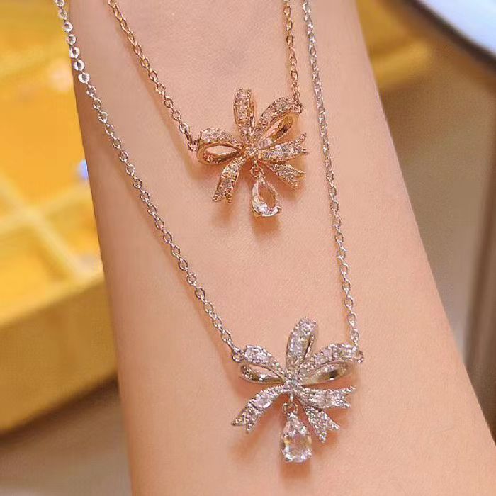 💰85 施华洛 新品 元素蝴蝶结项链 女水滴钻施华洛世奇元素水晶蝴蝶吊坠。