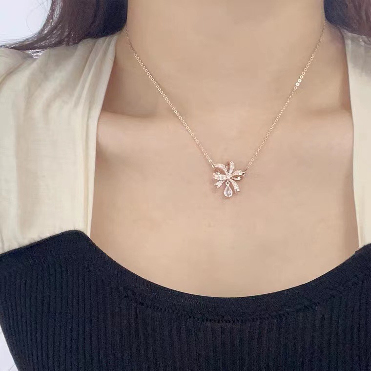 💰85 施华洛 新品 元素蝴蝶结 项链 女水滴钻施华洛世奇元素 水晶蝴蝶吊坠。