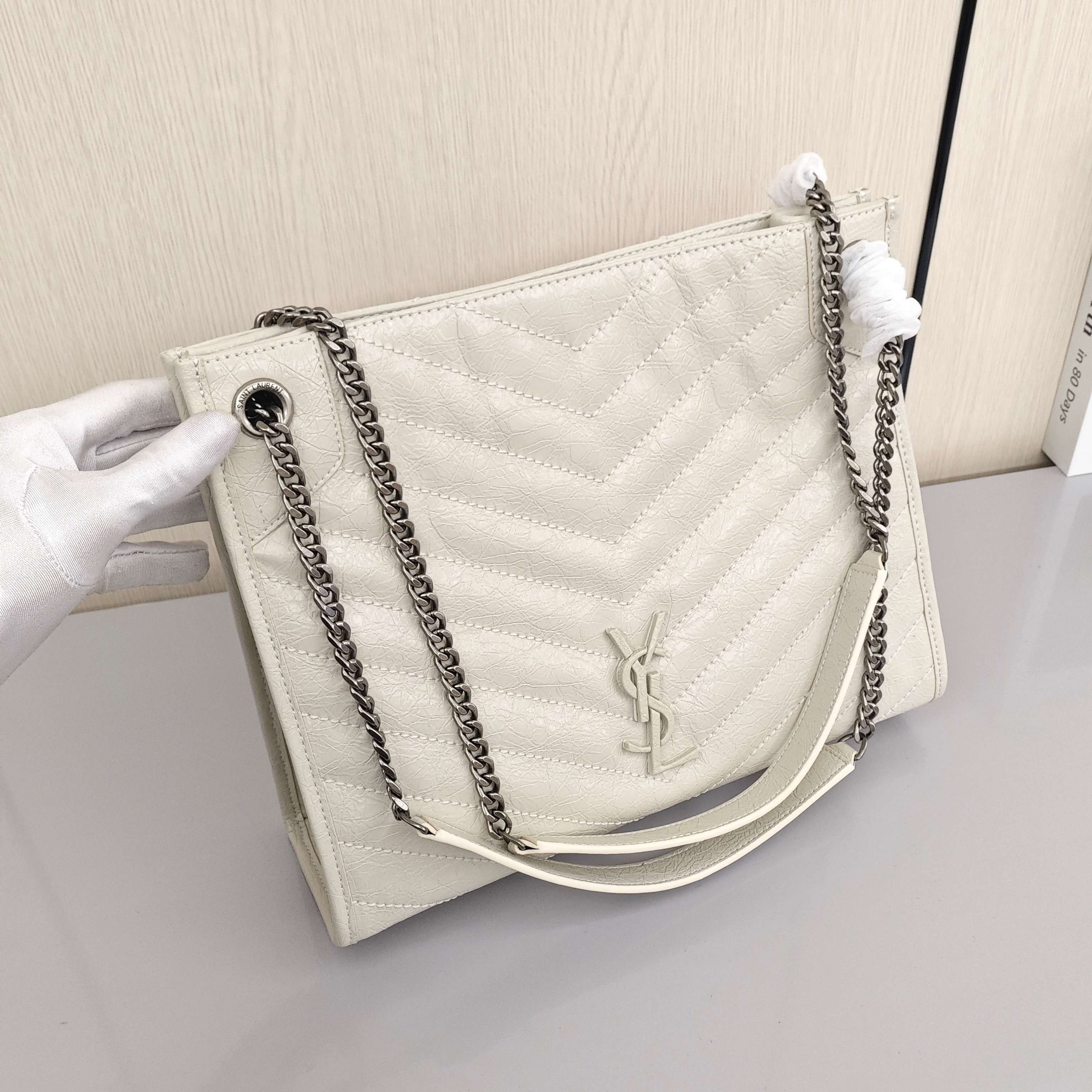 圣罗兰Niki shopping bag💰300 尺寸:33×27×12cm 特点:造型潇洒慵懒,通勤职场绝佳。 方式:吸磁式开合,内置拉链口袋,内衬空间很大,可放下平板电脑等办公物品。