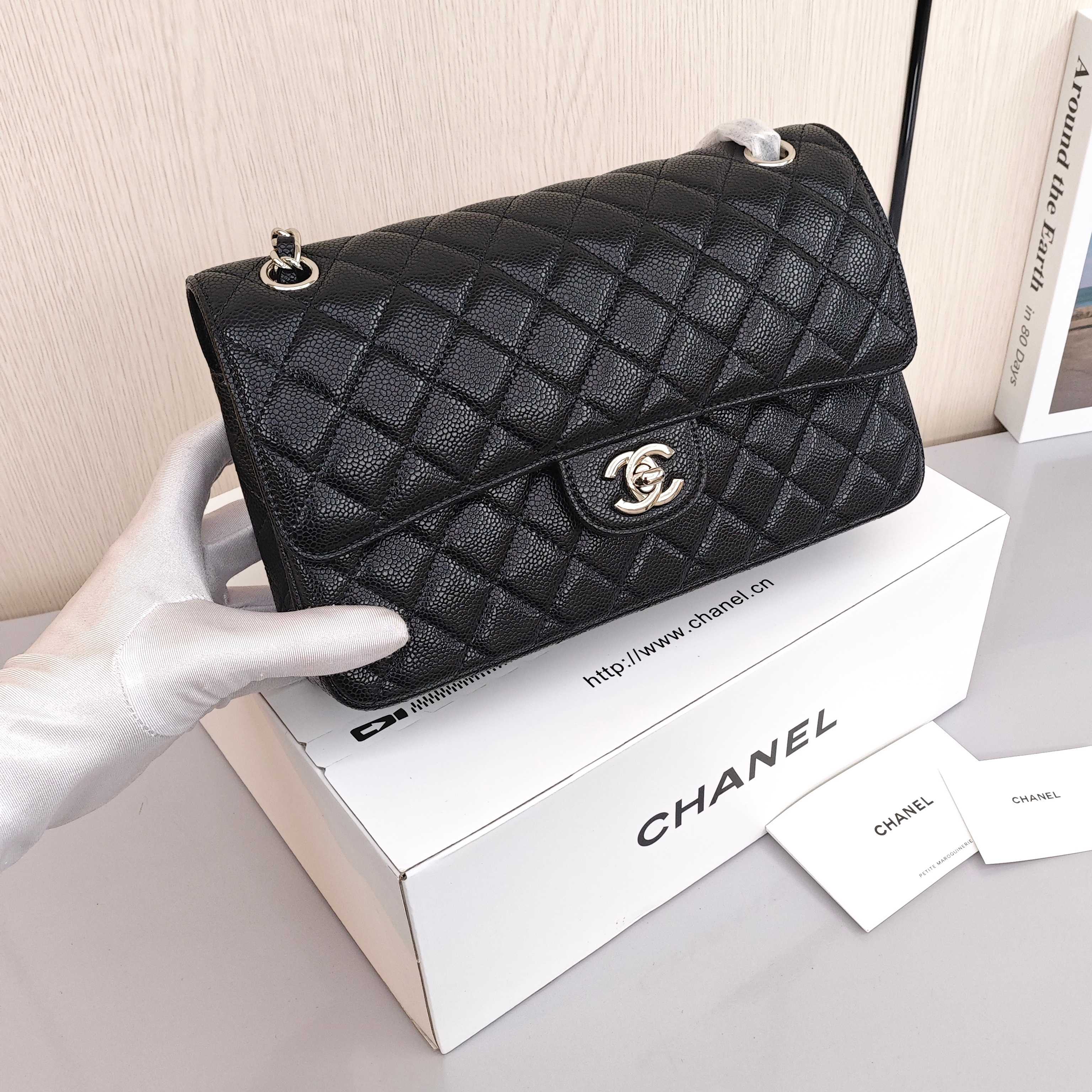 香奈儿CF链条包💰300|鱼子酱|黑银 尺寸:25×15×6.5cm 特点:风格高贵优雅,很高级很百搭。 方式:锁扣翻盖开合,超合理的空间设计,搭配滑动式背带,可腋下背和斜挎背。