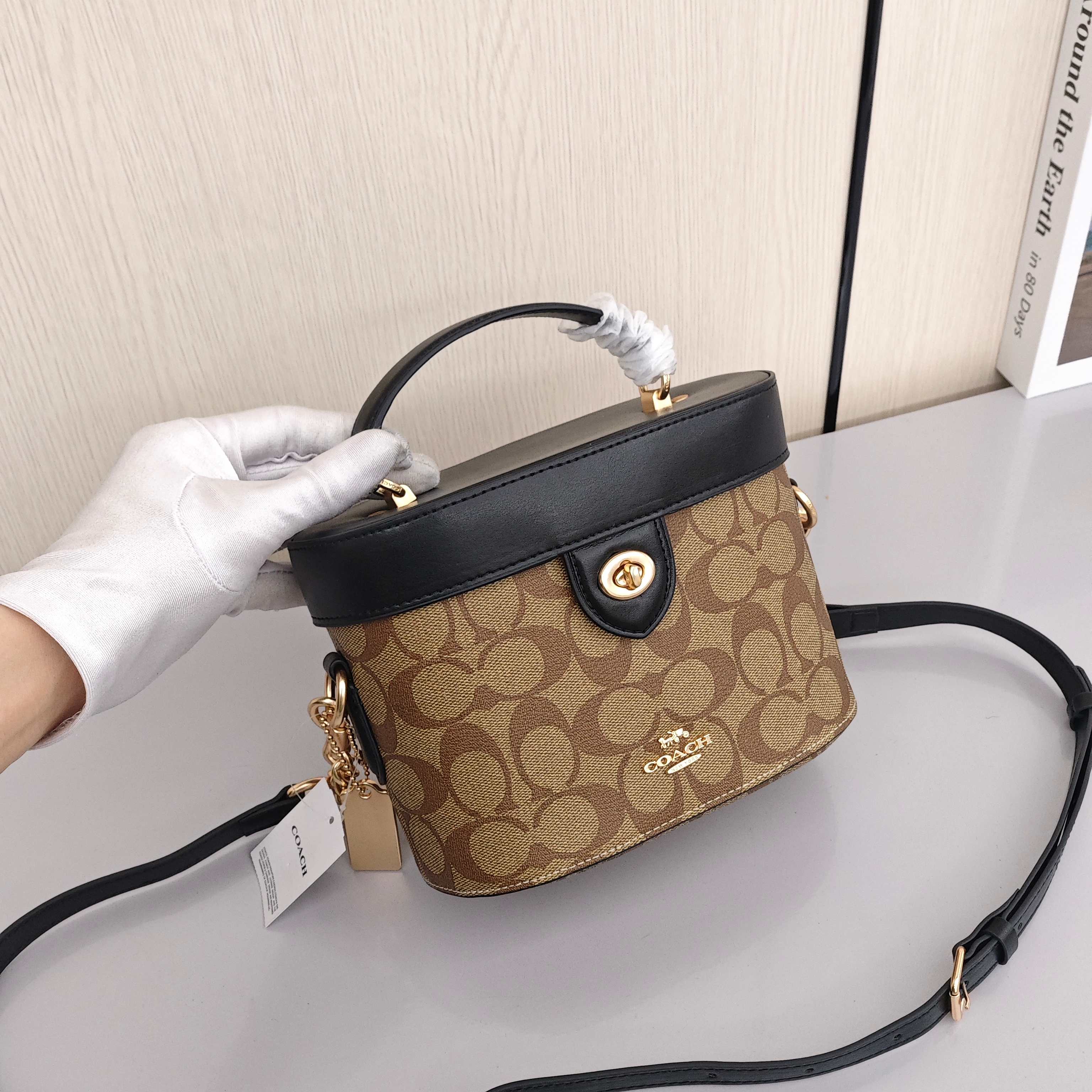 蔻驰化妆盒子包💰280 尺寸:20×13×10cm 特点:充满传统蔻驰特色,上身十分雅致。 方式:锁扣翻盖开合,内里空间宽裕,配有可拆卸的长肩带,可手拎可斜挎背。