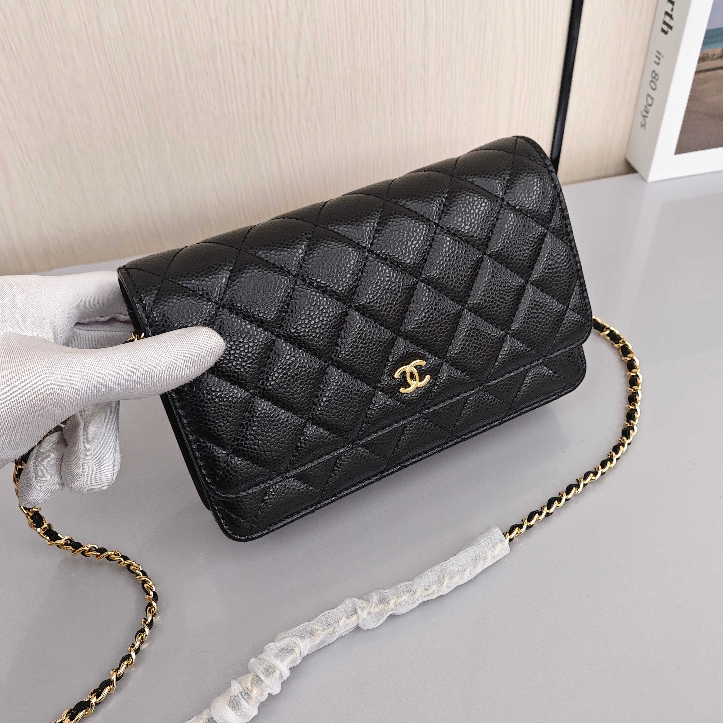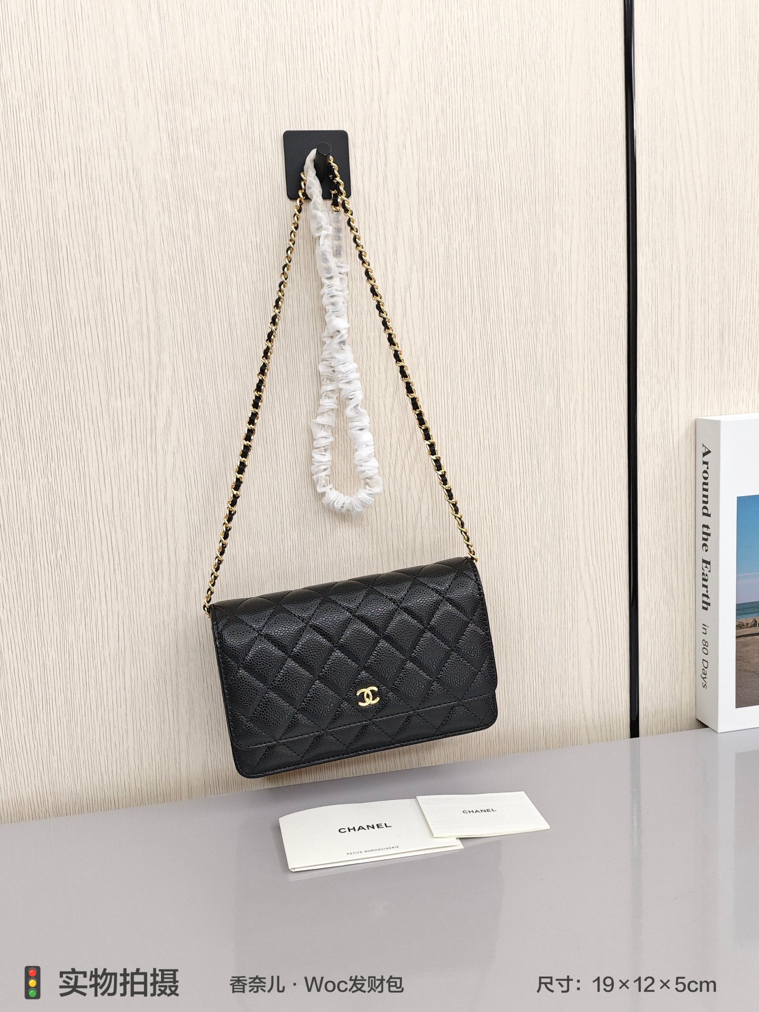 香奈儿·Woc发财包💰220 尺寸:19×12×5cm 特点:精致小巧百搭,鱼子酱质感满满。 方式:吸磁翻盖开合,内置拉链口袋及卡槽,可放下大屏手机等日常随身物品。