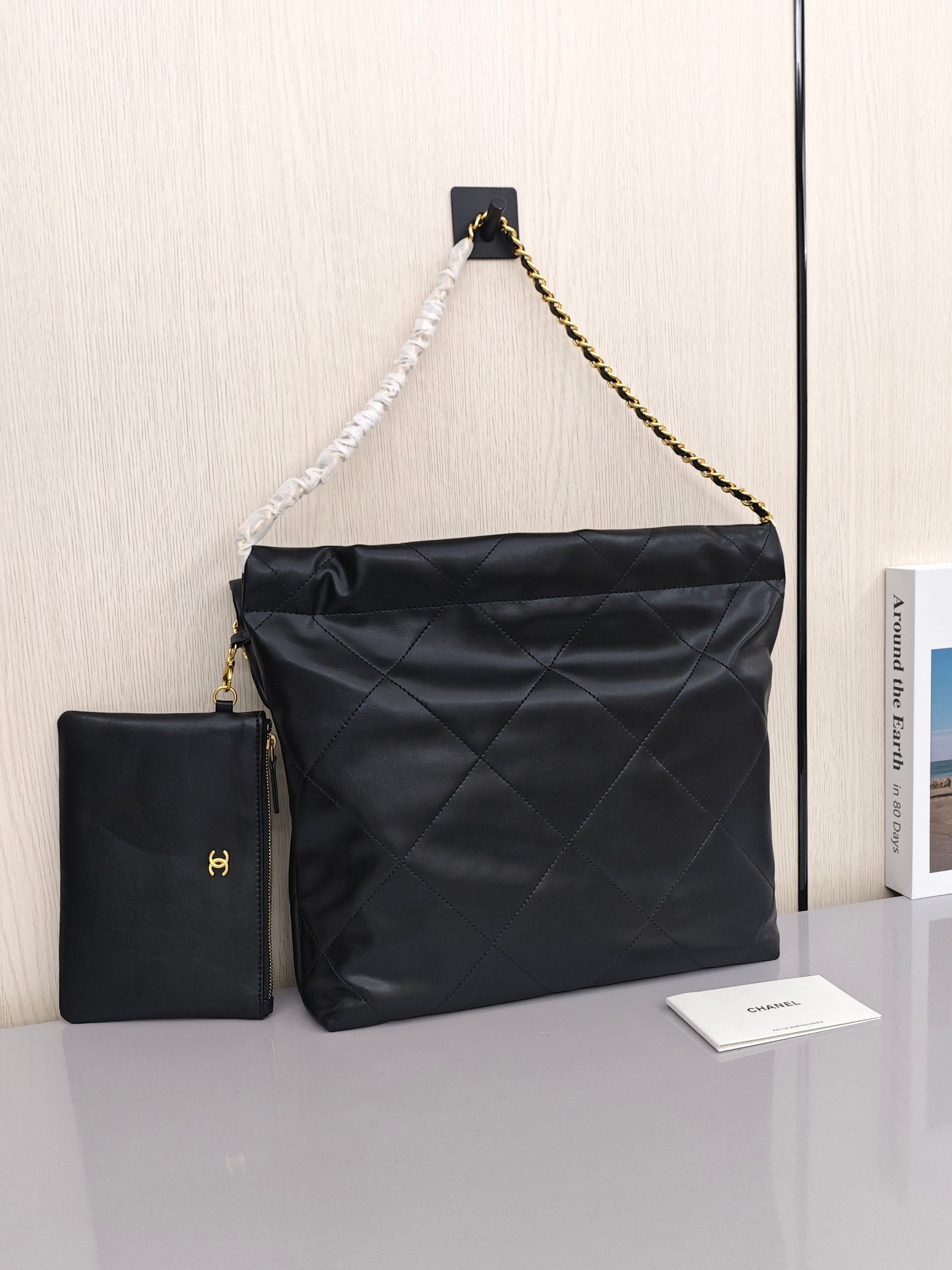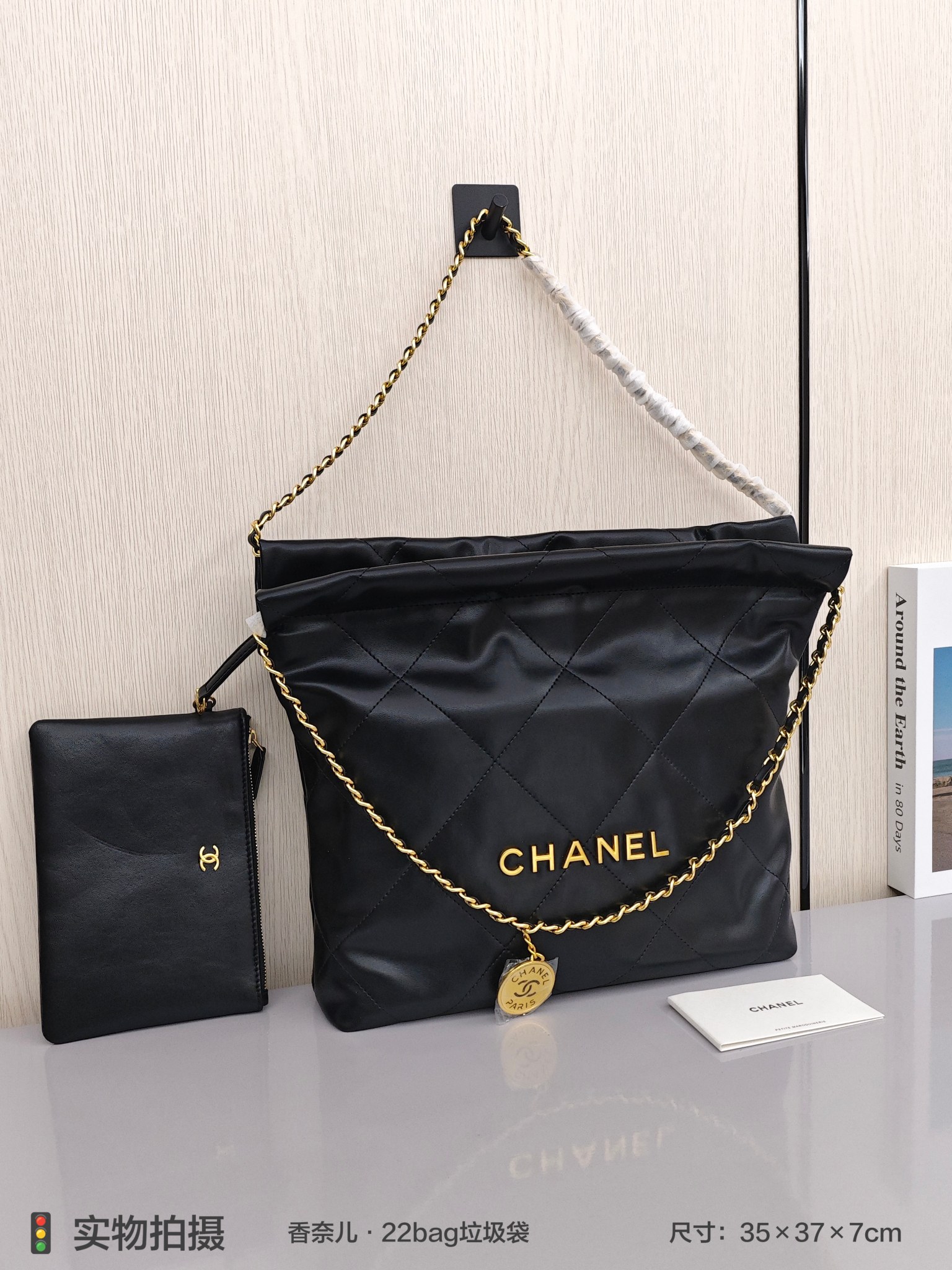 香奈儿·22bag垃圾袋💰300 尺寸:35×37×7cm 特点:款式随性大气,风格复古慵懒。 方式:抽绳式纽扣开合,搭配小手包非常实用,内置拉链口袋,黄金尺寸,可放下iPad。