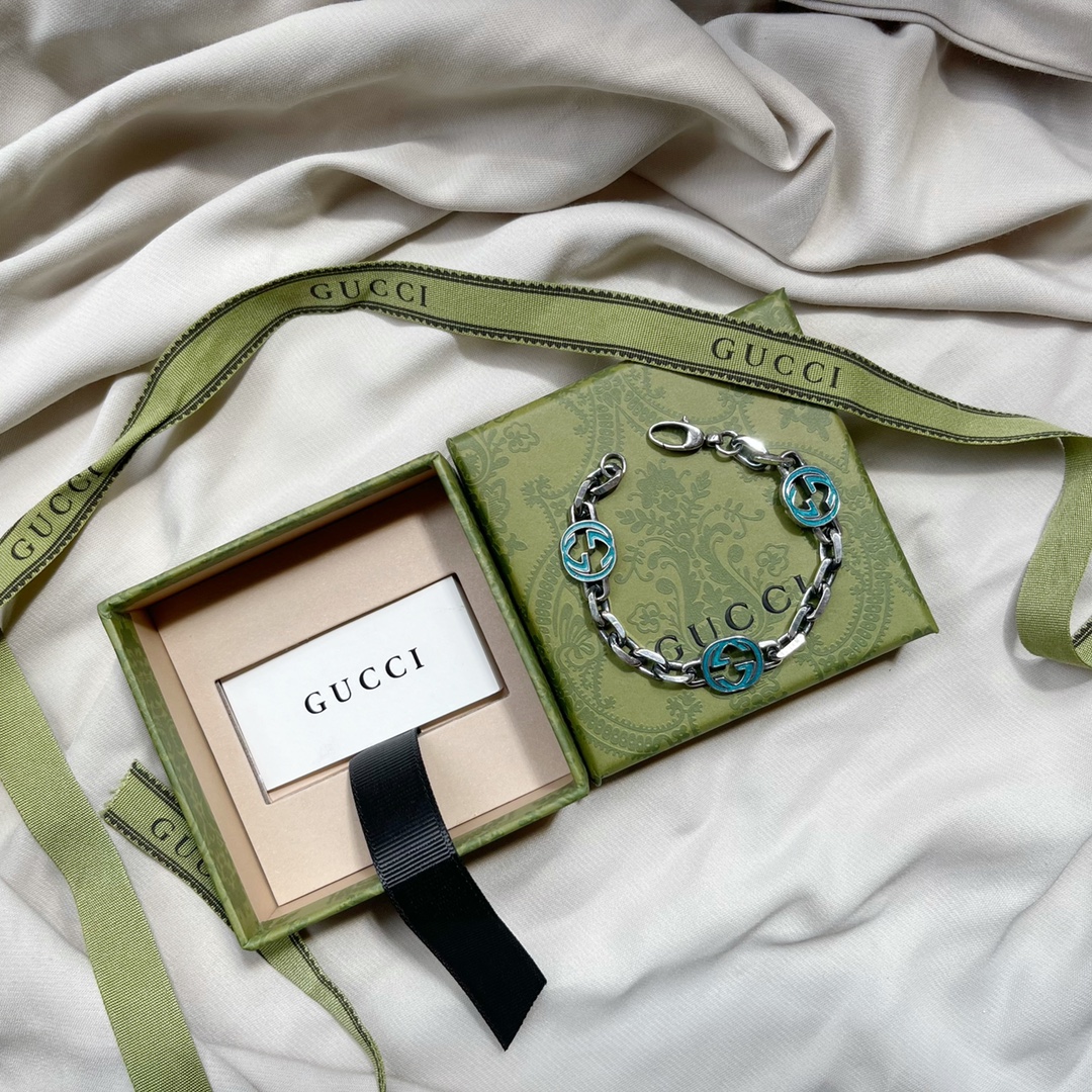 💰130 古驰双G珐琅互扣式复古手链,正面绿色珐琅增添一抹靓丽,背面复古做旧,古典与潮流的结合