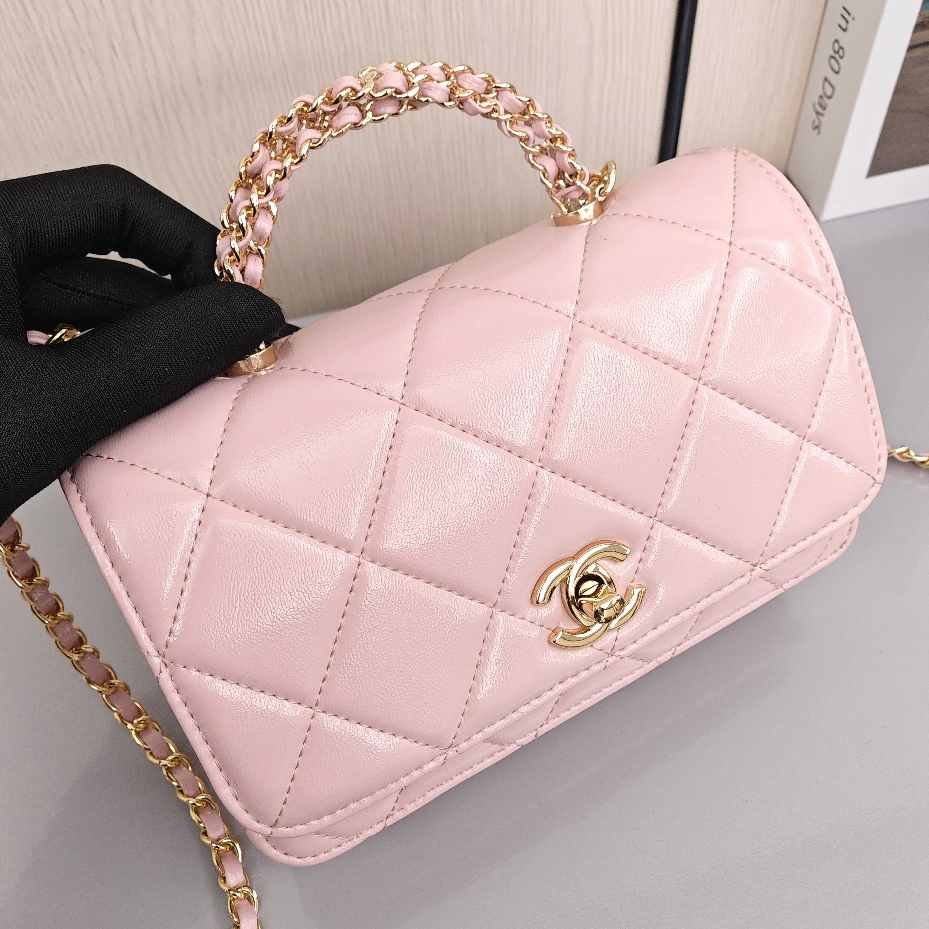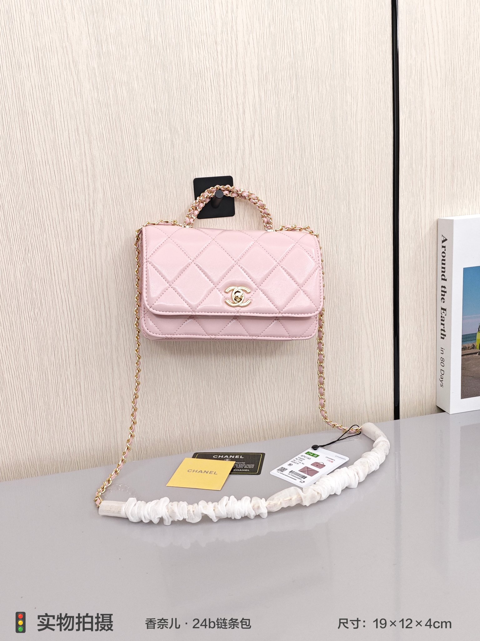 Chanel香奈儿24b链条包💰280 尺寸:19×12×4cm 特点:金属手柄精致优雅,皮质细腻舒软。 方式:锁扣开合,内置拉链口袋及卡槽,可手拎可斜挎。