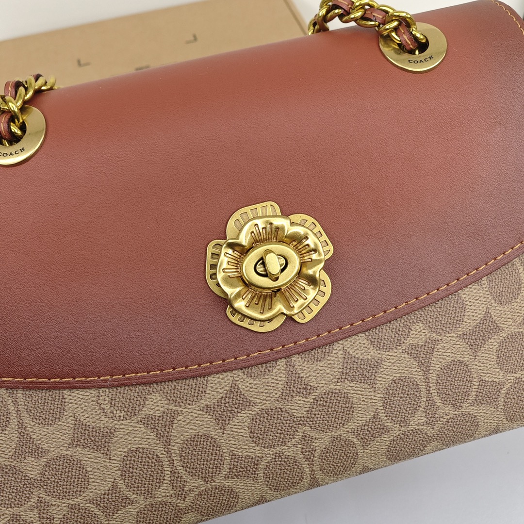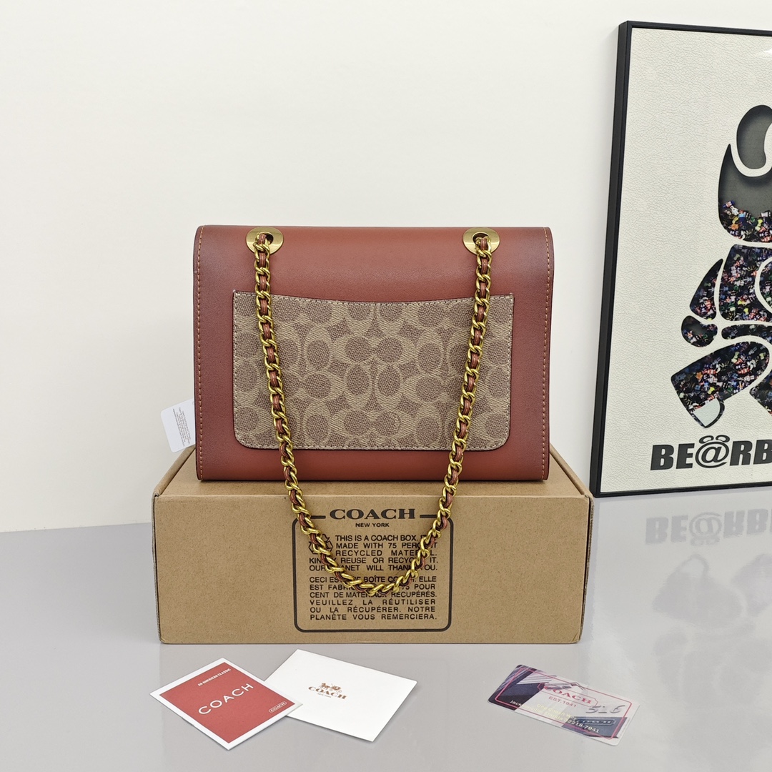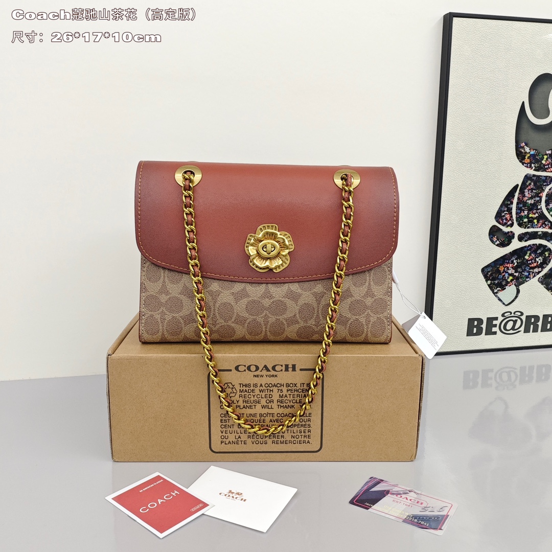蔻驰山茶花链条包💰300 所有女生都想拥有的一款轻奢包包,采用光滑皮革和经典标志涂层帆布制作,配备茶玫瑰旋锁口,带有皮革链条带,即可作为长肩带,也可以变为两个短手柄,容量很大,怎么背都好看。 尺寸:26×17×10cm