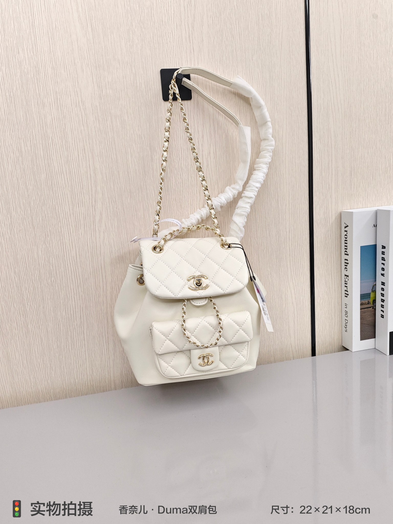 香奈儿Duma双肩包💰300 尺寸:22×21×18cm 特点:极具氛围感,精致超百搭。 方式:锁扣开合,小巧身材拥有宽裕容量,可手拎可斜挎可肩背。
