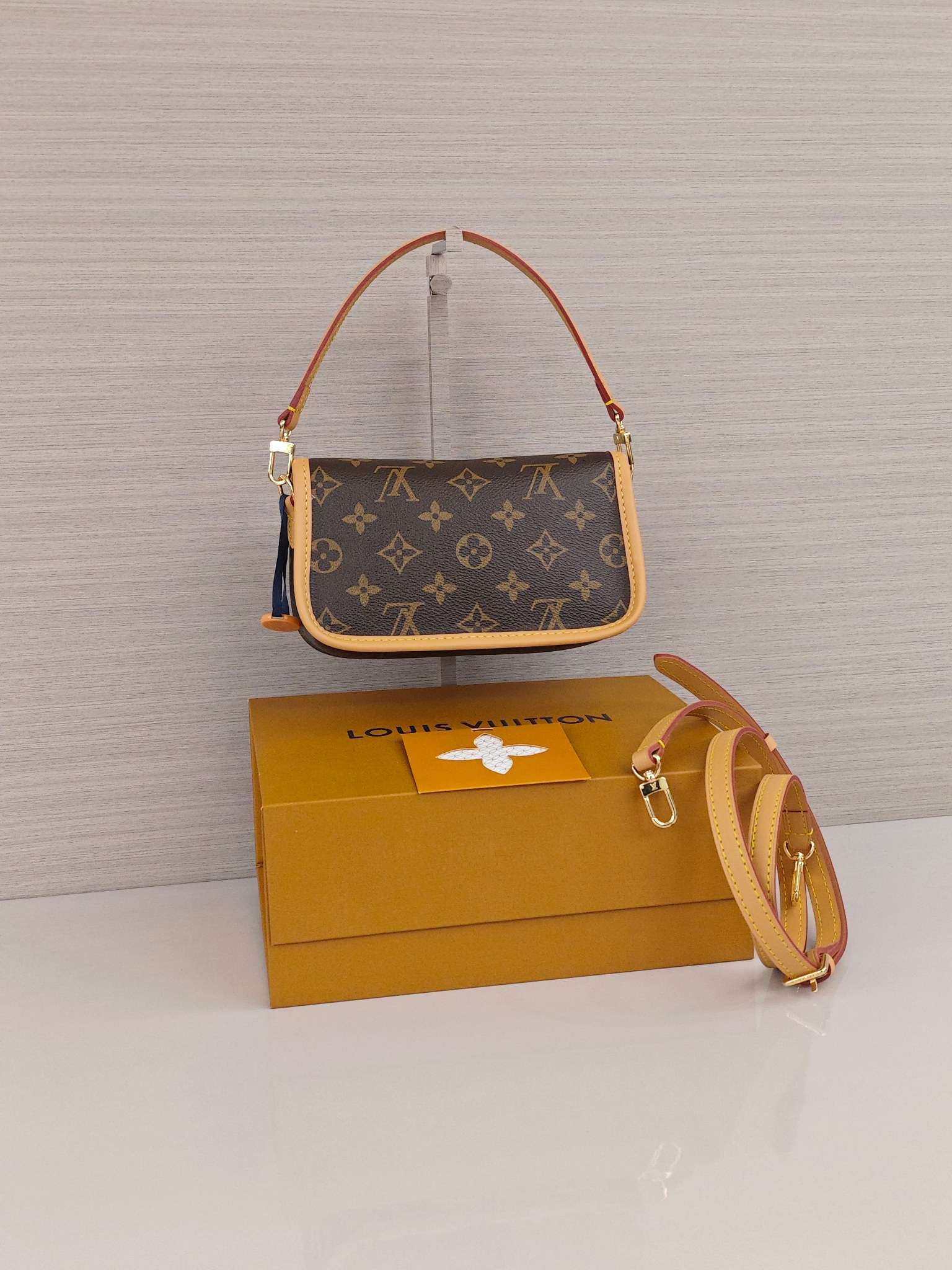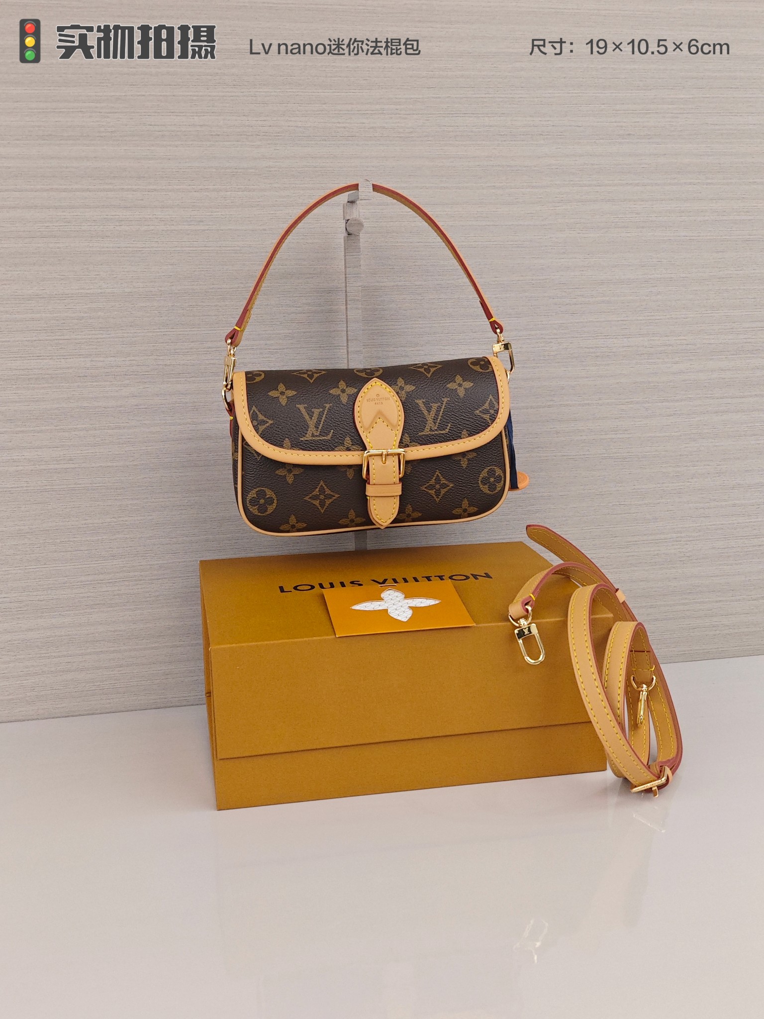 Lv nano迷你法棍包💰260 以Monogram Empreinte 皮革浓缩 Diane 手袋的经典构型,复现圆润翻盖和腰带式开合等原型细节,充裕空间可收纳手机和日常所需,可拆卸手柄和可拆卸并调节的肩带实现灵活背携,昼夜场合皆宜。 尺寸:19×10.5×6cm