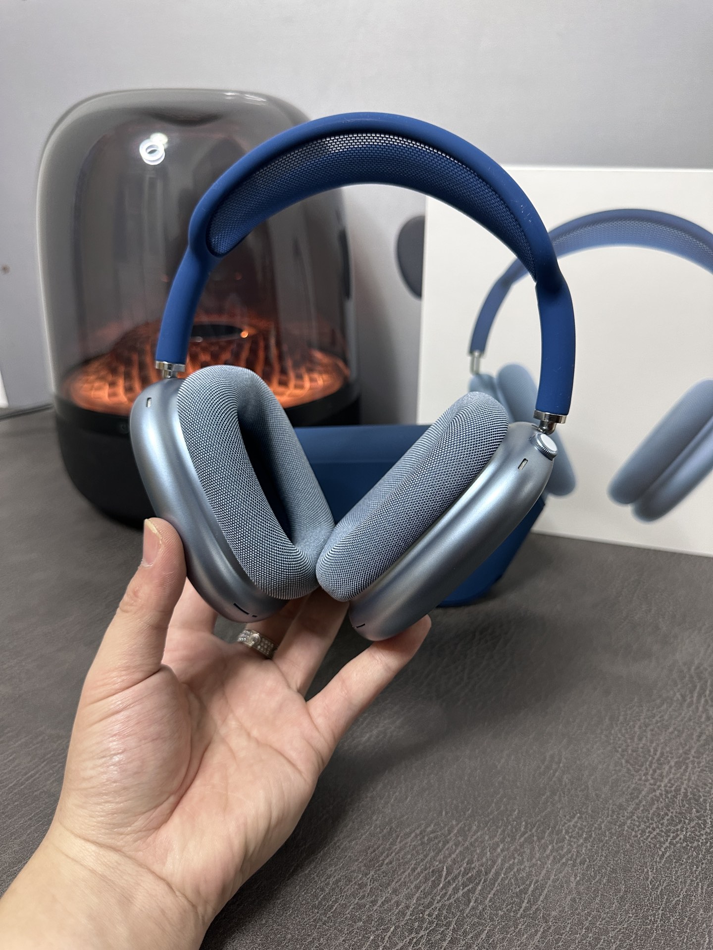 蓝色实拍 批💰450 苹果AirPodsMax 头戴式耳机 弹窗 本机显示正确配色 区别市面显示配色对不上 全网最高版本 45db真实降噪/通透 售后:不影响二次销售15天可退换(包装损坏需扣钱、耳套海绵用脏不退不换只保修 保修三个月)出厂每台都有质检 质量非常稳