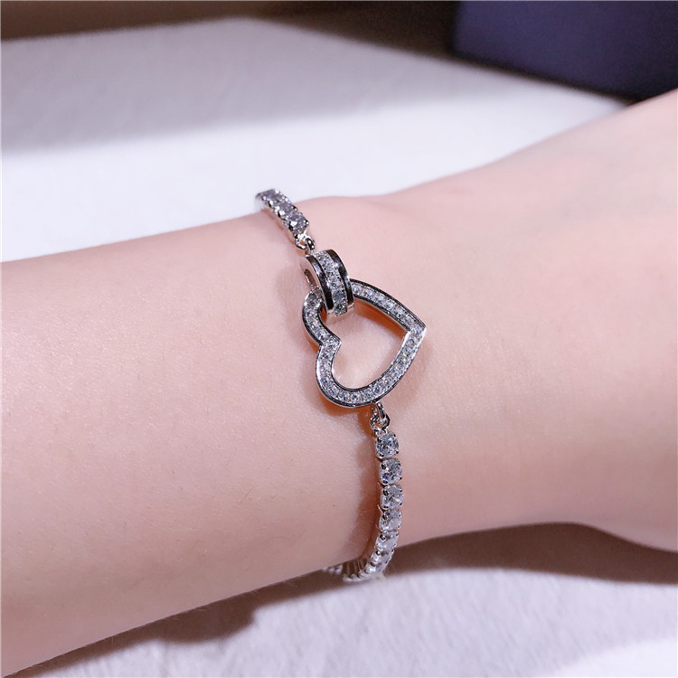 【2.14情人节】💰95 新品 施华洛世奇 浪漫爱心环扣手镯 气质心心相印心形拉抽手链 。