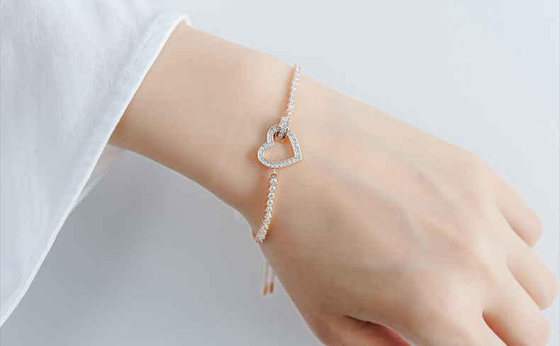【2.14情人节】💰95 施华洛世奇气质玫瑰金爱心手镯送女友礼物,这款浪漫的畅销手链说出「我爱你」。连结的心和圆圈图形象征着两人之间独有的羁绊。