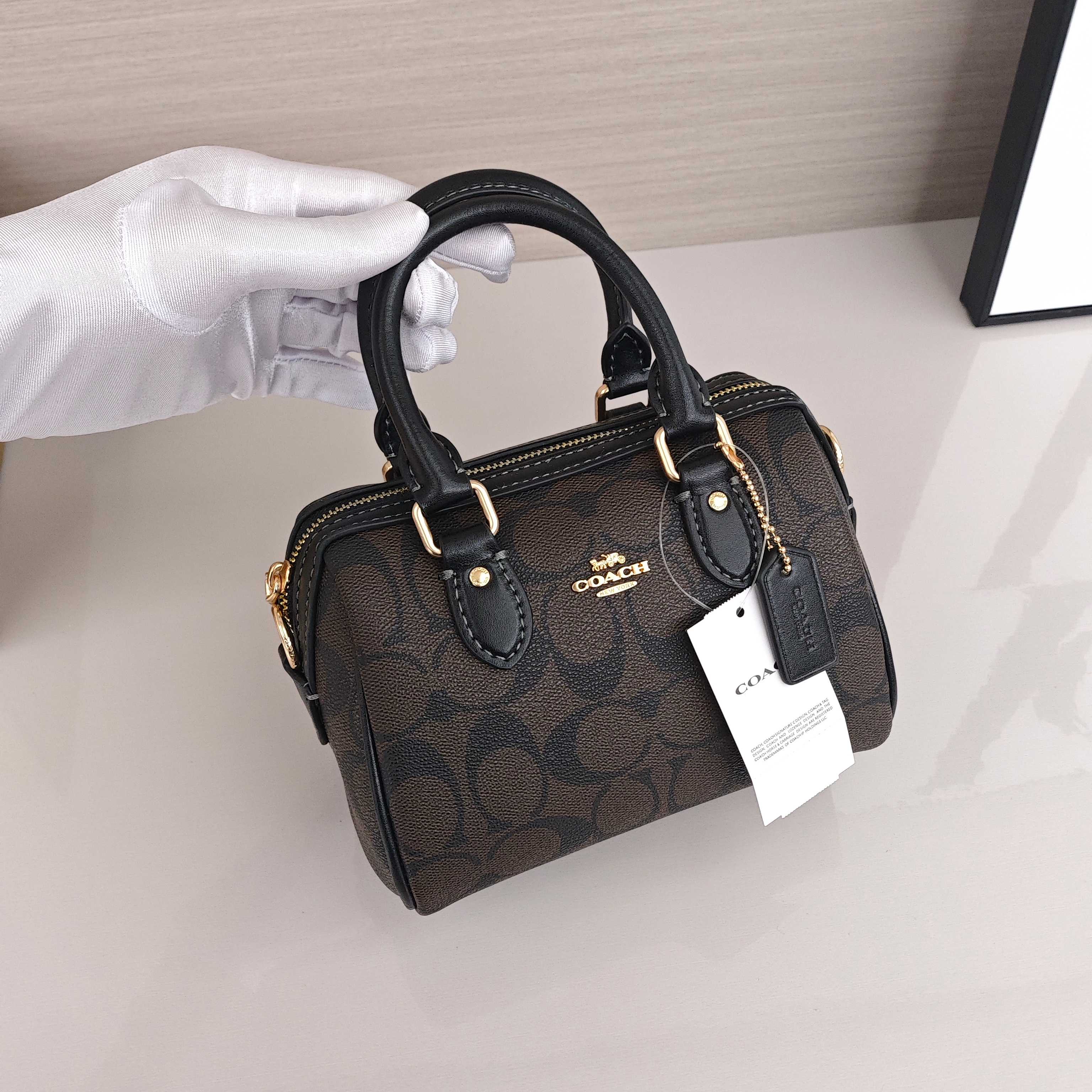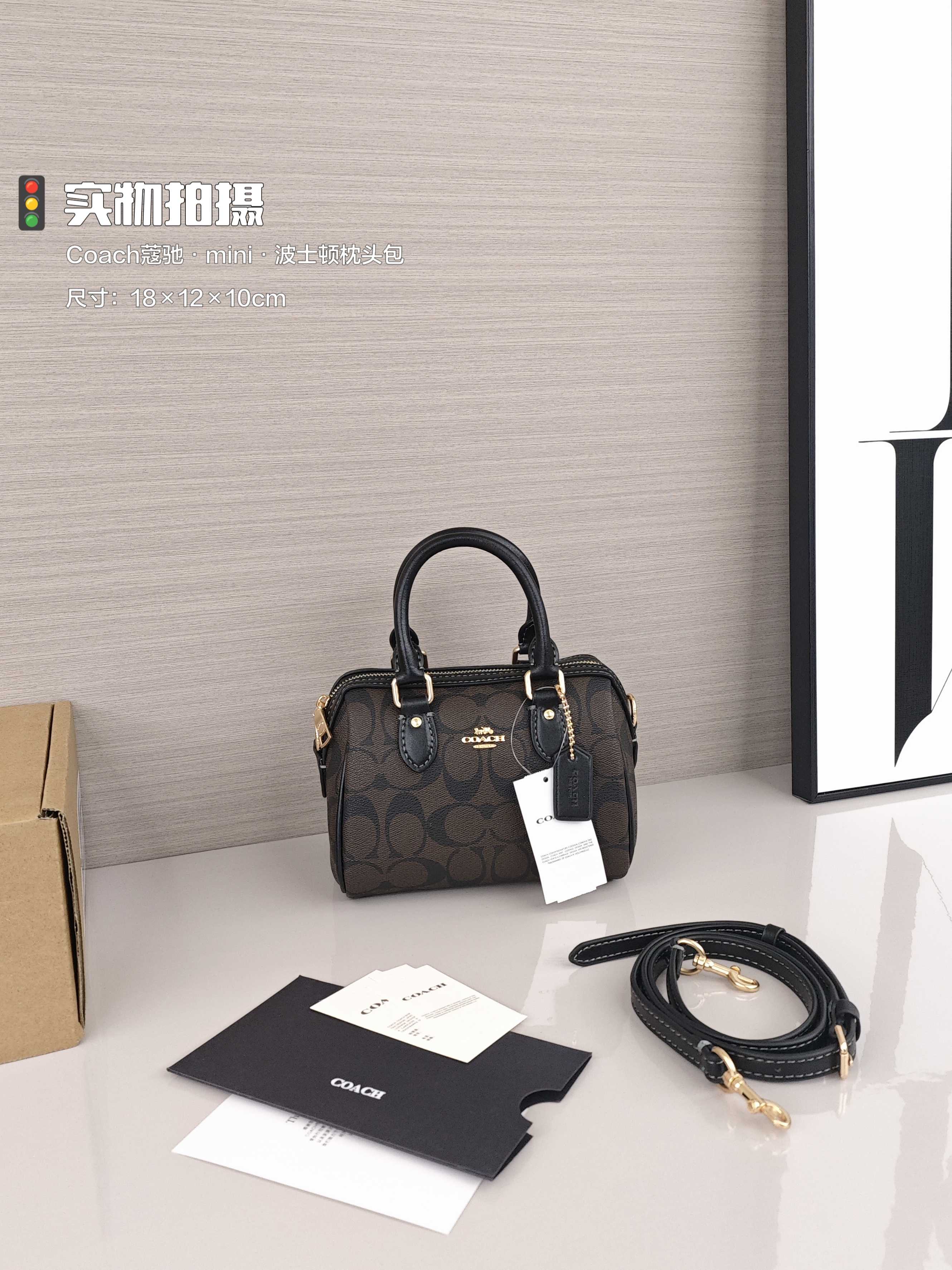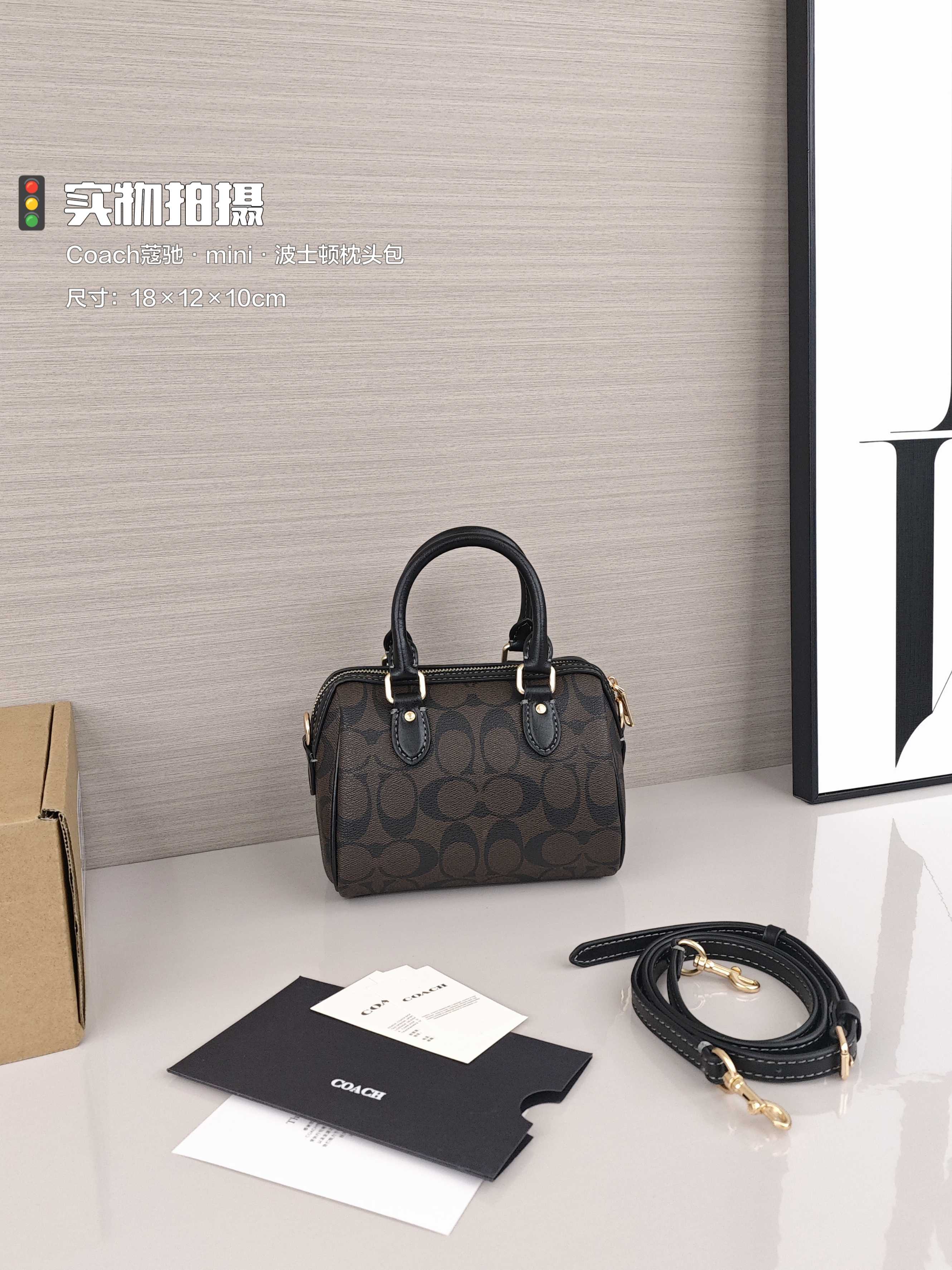 蔻驰mini波士顿枕头包💰220 经典枕头包版型,老花logo拼接,肩带可拆卸,斜挎手拎都可以,拉链开合,适合一年四季穿搭。 规格:18×12×10cm