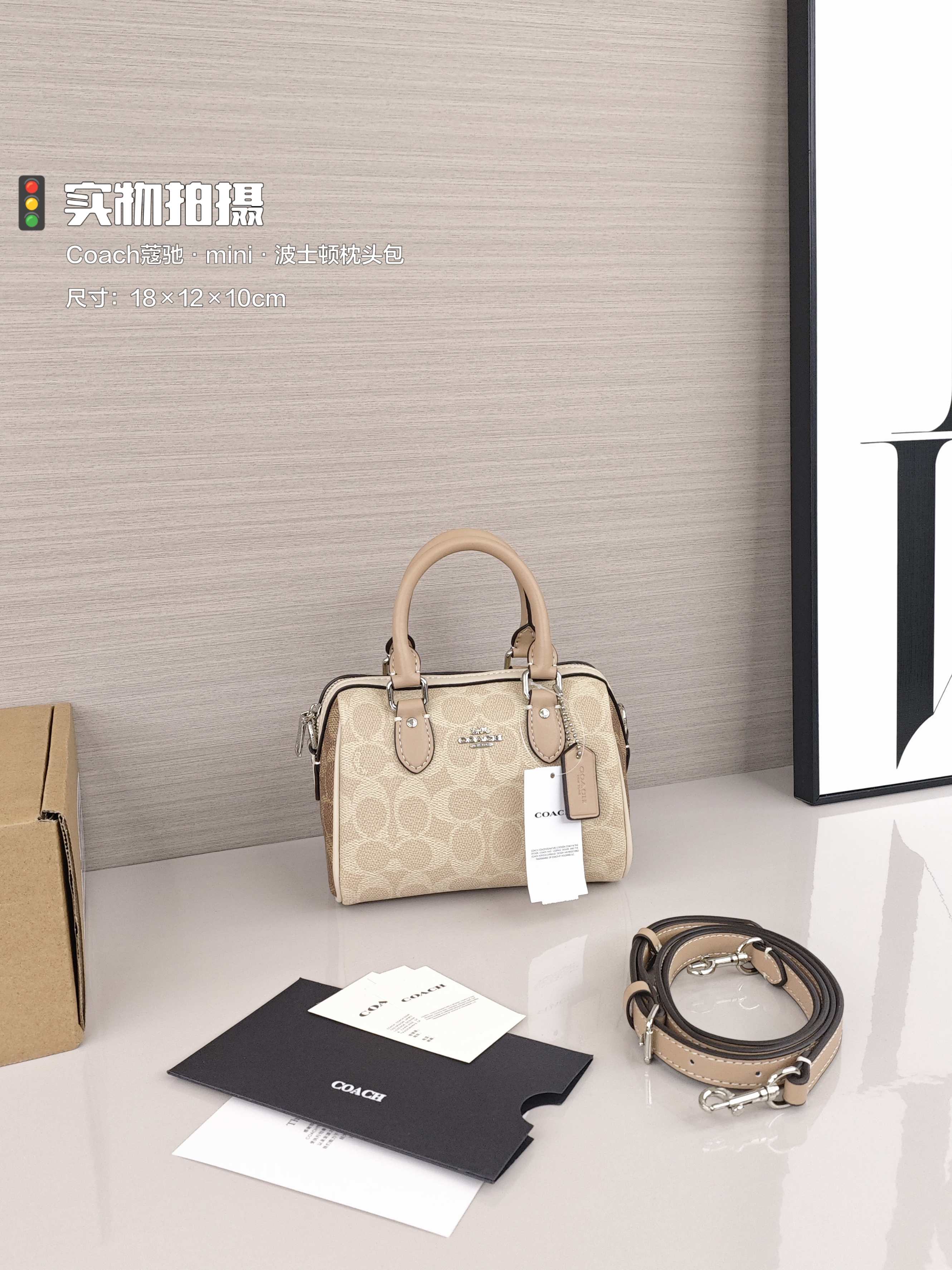 蔻驰mini波士顿枕头包💰220 经典枕头包版型,老花logo拼接,肩带可拆卸,斜挎手拎都可以,拉链开合,适合一年四季穿搭。 规格:18×12×10cm