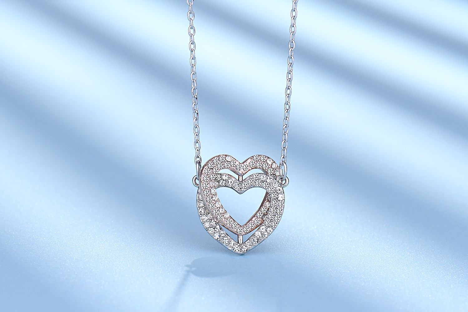 【2.14情人节】💰85 2023心心相印双心形项链女施华洛元素水晶爱心锁骨链 .