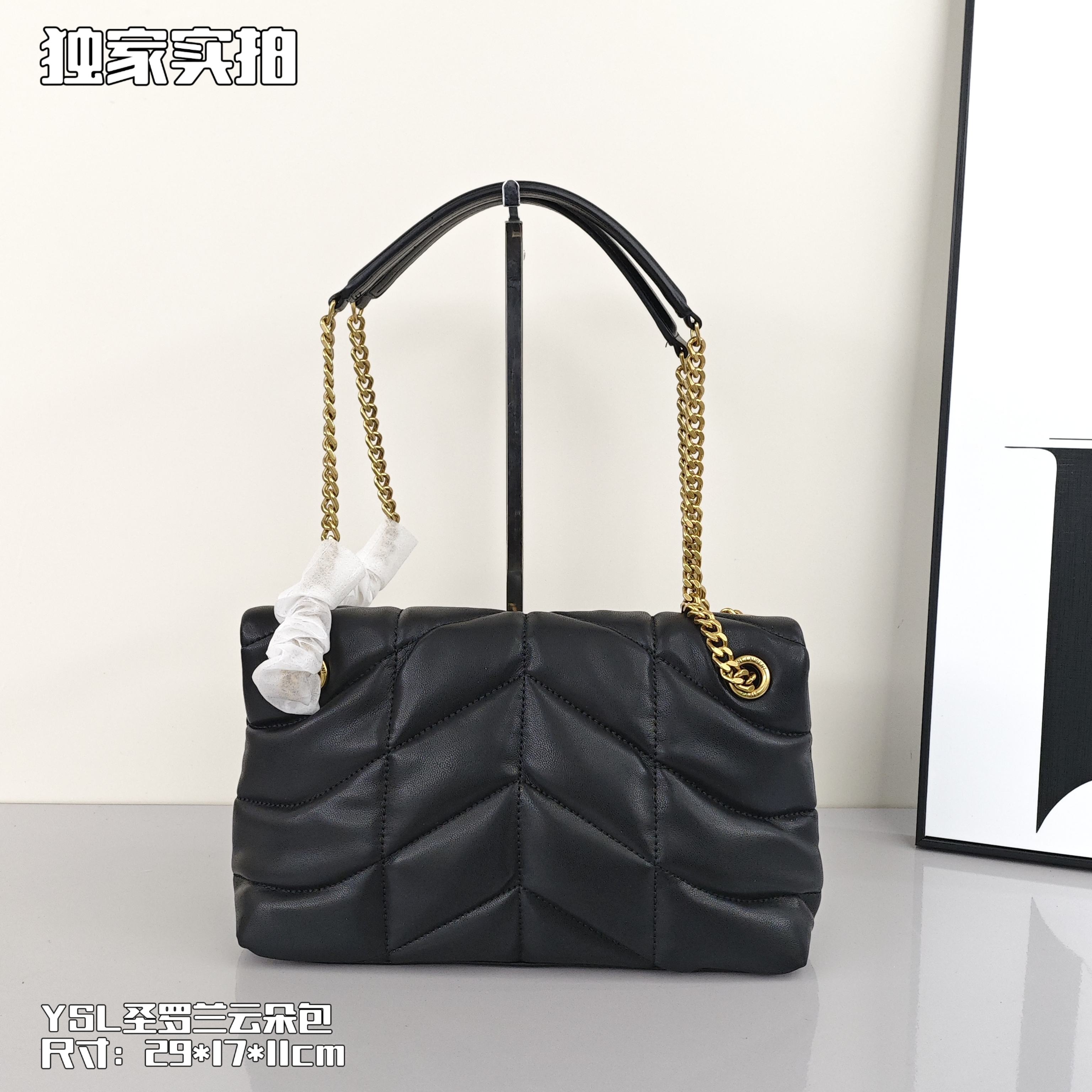 YSL圣罗兰云朵包💰300 进口小羊皮制作,手感柔软细腻,犹如怀抱云朵般的感受,经典的Y家logo链条及扣眼五金均采用拉丝金属材质,哑光雾面的质感及其别致,容量满足日常通勤。 尺寸:29*17*11cm