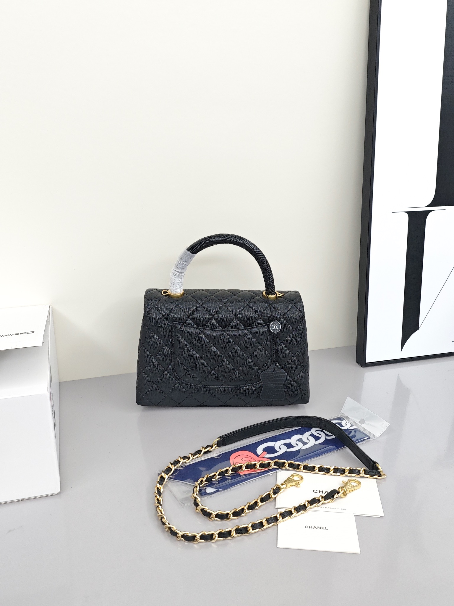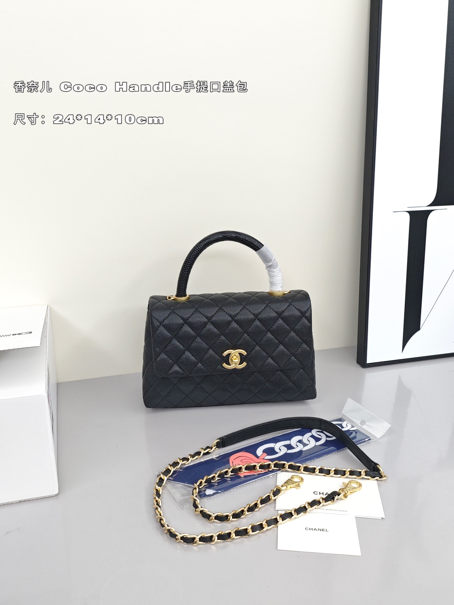 香奈儿Coco Handle手提口盖包💰300 经典让你越看越迷人,款式与皮质相辅相成,蜥蜴皮手腕点缀整体造型提升奢华的视觉,驾驭任何场合都极致优雅。 尺寸:24*14*10cm