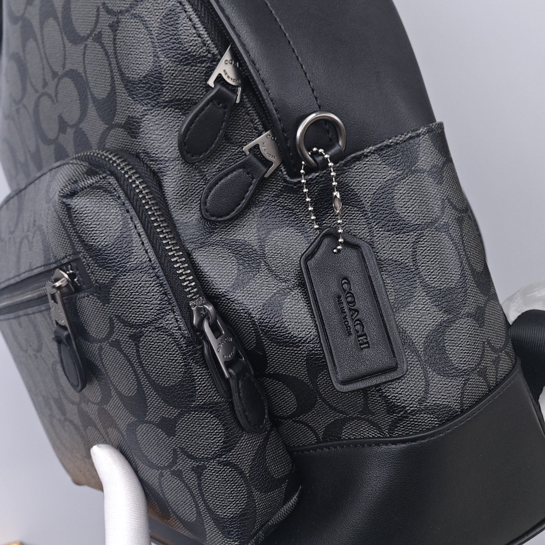 蔻驰男士双肩包💰300 采用特色涂层帆布和小牛皮革制作,内部分区设有加了衬垫的数码产品袋和多功能口袋,可妥帖存放您的手机/充电器和其他日常物品,加厚蜂窝背带,久背不累。 尺寸:44*35*15cm(包括顶长)