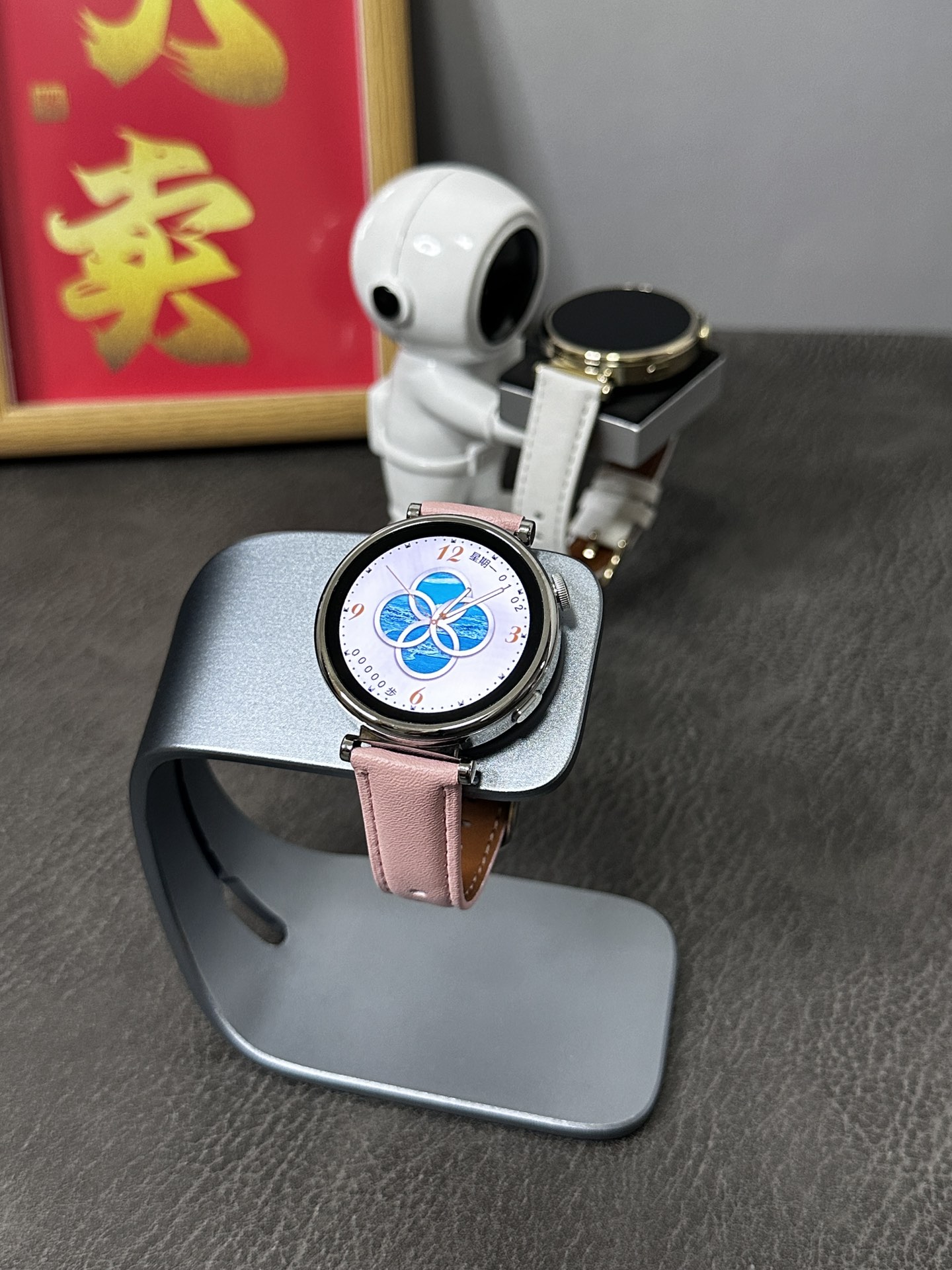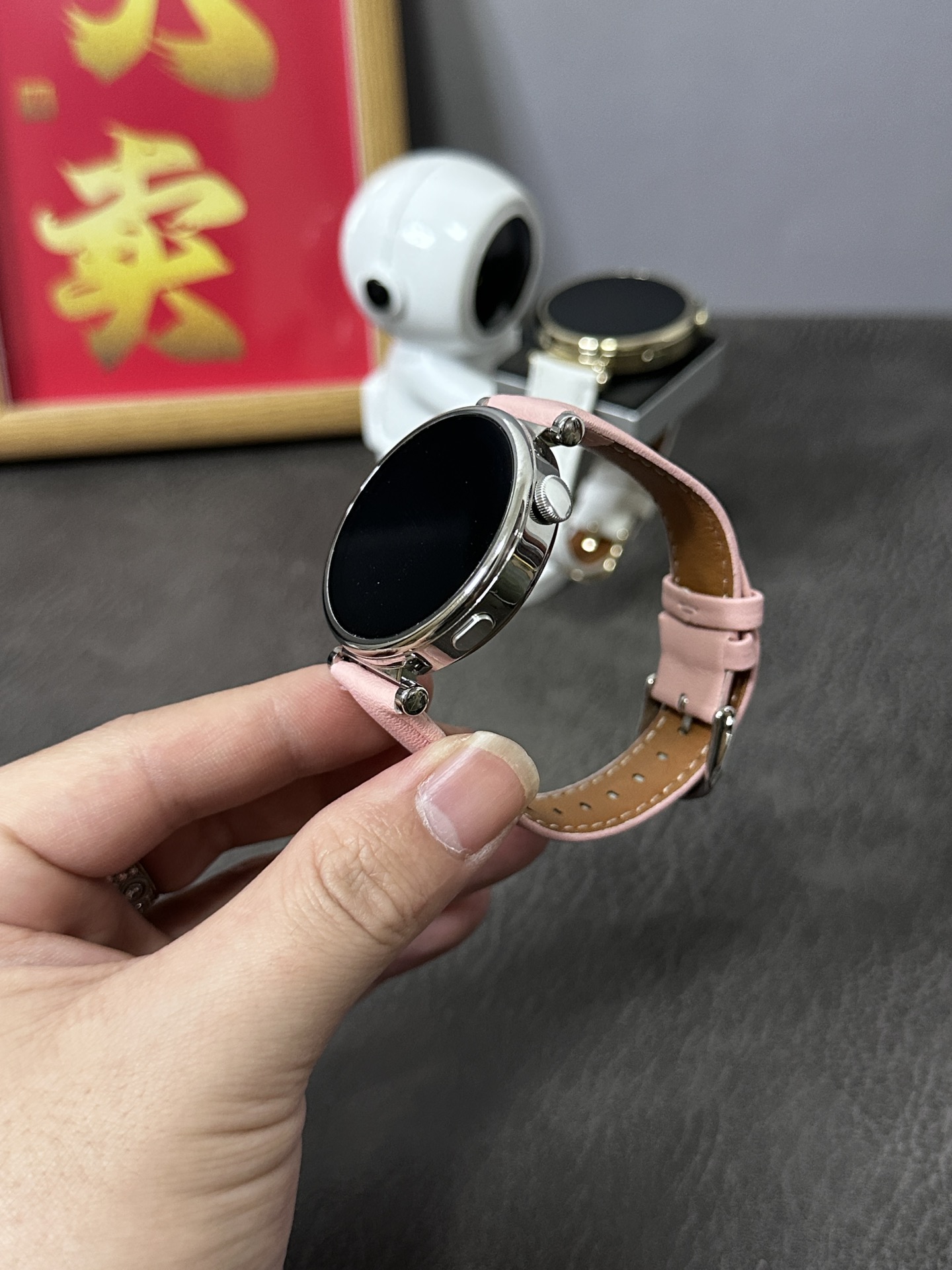 新款上新🔥HUAWEI 华为WATCH GT4 mini款智能手表‼️批💰270 41mm表盘 女款表盘 银色、金色俩色 新增以下卖点 瑞昱8763VP芯片带4Gb内存+256MB内存 带本地音乐 高德地图 电子书功能 录音功能 指南针🧭相册100张以上照片 支持蓝牙通话 接收短信 带支付宝/微信 双支付,支持离线支付 真实心率监测 血压 血氧功能 带nfc门禁功能 带抬手亮屏 息屏时钟 生活助手 床头灯、闹钟、计算机等功能❗️ 记步功能 女性健康 睡眠检测 压力检测 呼吸 梅脱 带语音助手 可通过语音助手转换发文字信息 自带三款小游戏 摇一摇拍照控制 天气预报推送 日历 运动检测等功能 该有的都有‼️ 下单配双表带 皮带➕钢带 标配专用无线充电器 说明书‼️ 售后:手表后背膜不撕 手表不刮花不影响二次销售15天内支持退换 保修三个月 刮花影响二次销售只保修‼️