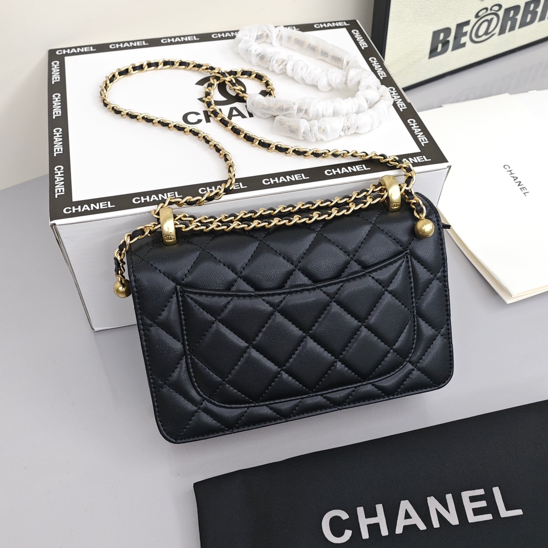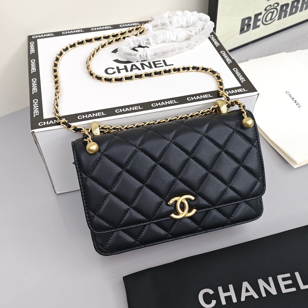 香奈儿双金珠链条包💰260 双金珠的Woc美到骨子里,无论高个子还是小个子都可以驾驭,随意调节它的链条,长短不齐的垂钓下来有种不同的韵味,黑金的搭配出了名的百搭,又美又酷的woc谁不爱。 尺寸:19*12*3.5cm