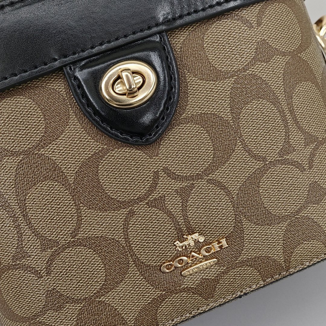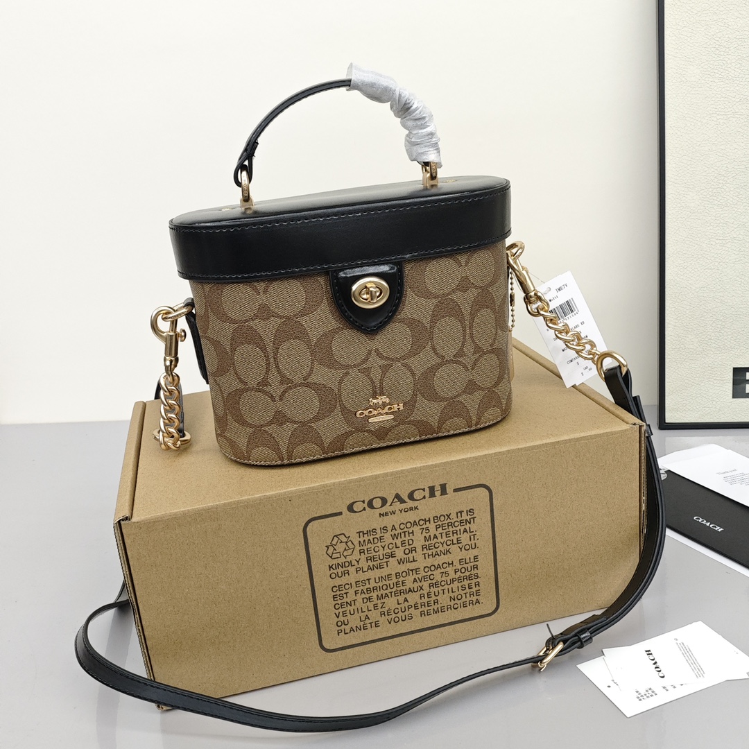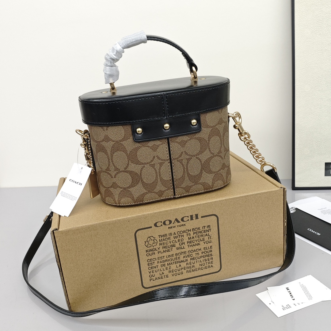 Coach蔻驰化妆盒子包💰280 借鉴历史悠久的 Cannes 化妆箱造型,以此款半硬质手袋重现昔日经典的魅力,充满蔻家传统特色的外观设计,十分雅致,配有顶部手柄和可脱卸肩带,能装又百搭,无论是中性 青春 活泼的风格都能搭。 规格:20*13*10cm