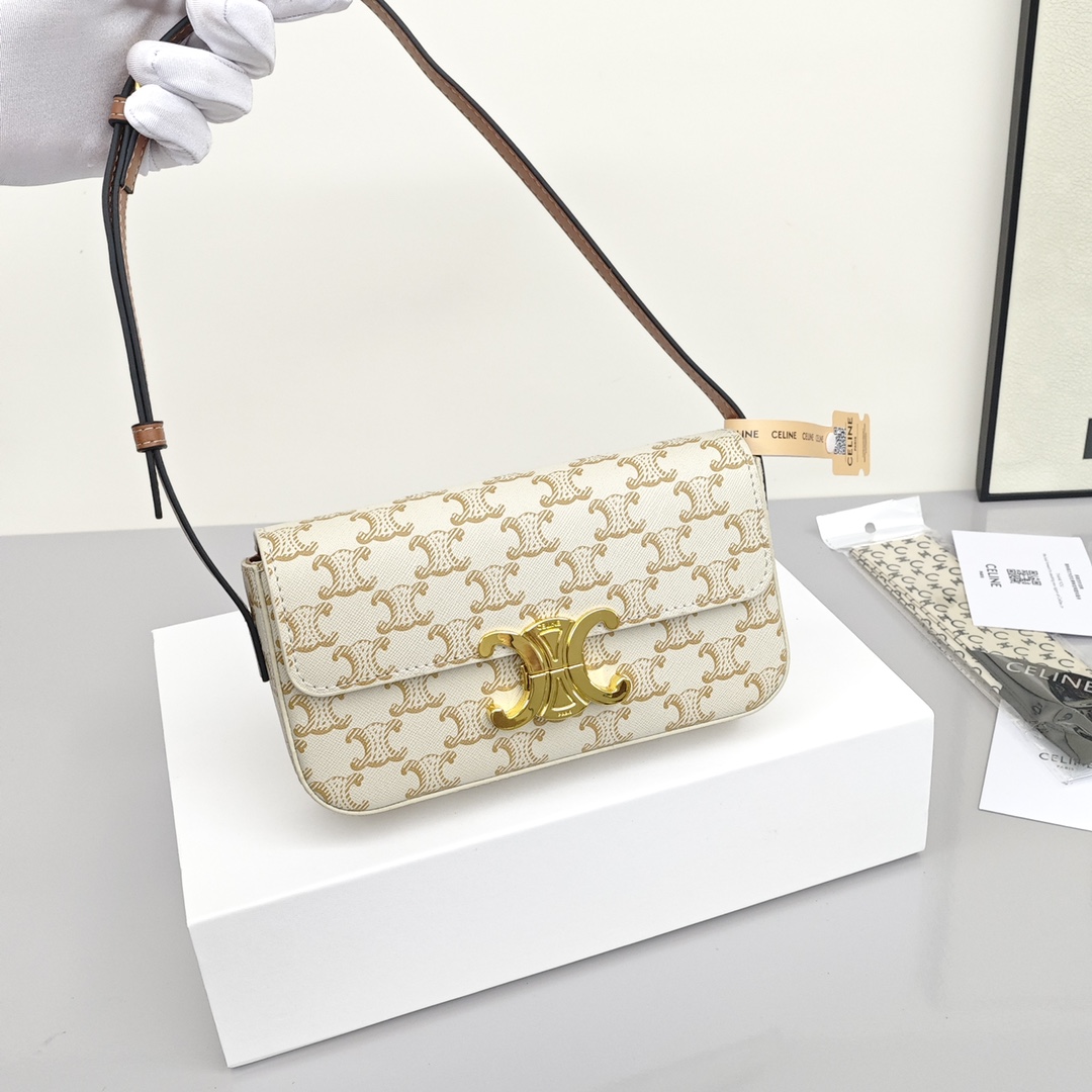 Celine赛琳凯旋门腋下包💰220 这款高颜值的TRIOMPHE系列老花凯旋门,简直太深入人心了,标志性的凯旋门五金搭配小巧的精致的造型,不仅百搭,而且颜值非常可,肩带可调节,容量也非常可。 规格:20*10*4cm(附送丝巾)