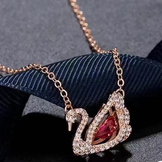 【出行必备】 💰90 施华洛新款跳动的心项链女玫瑰金灵动红天鹅锁骨链。