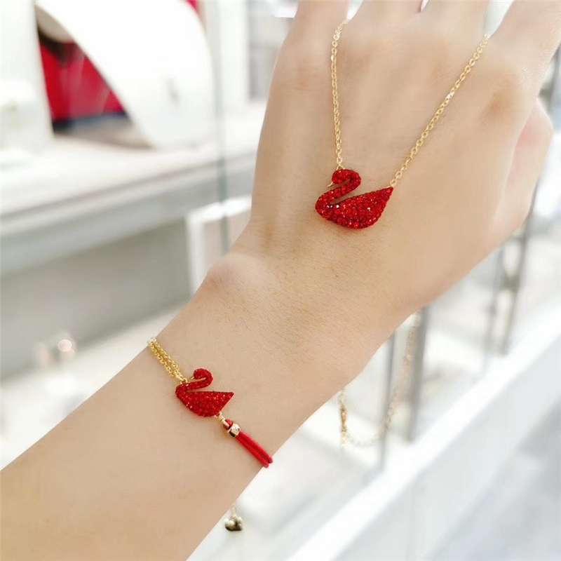 【双11来了】80 施华洛世奇红色天鹅 ICONIC SWAN 时尚经典优雅 女手链红色天鹅,环绕腕间的好运。