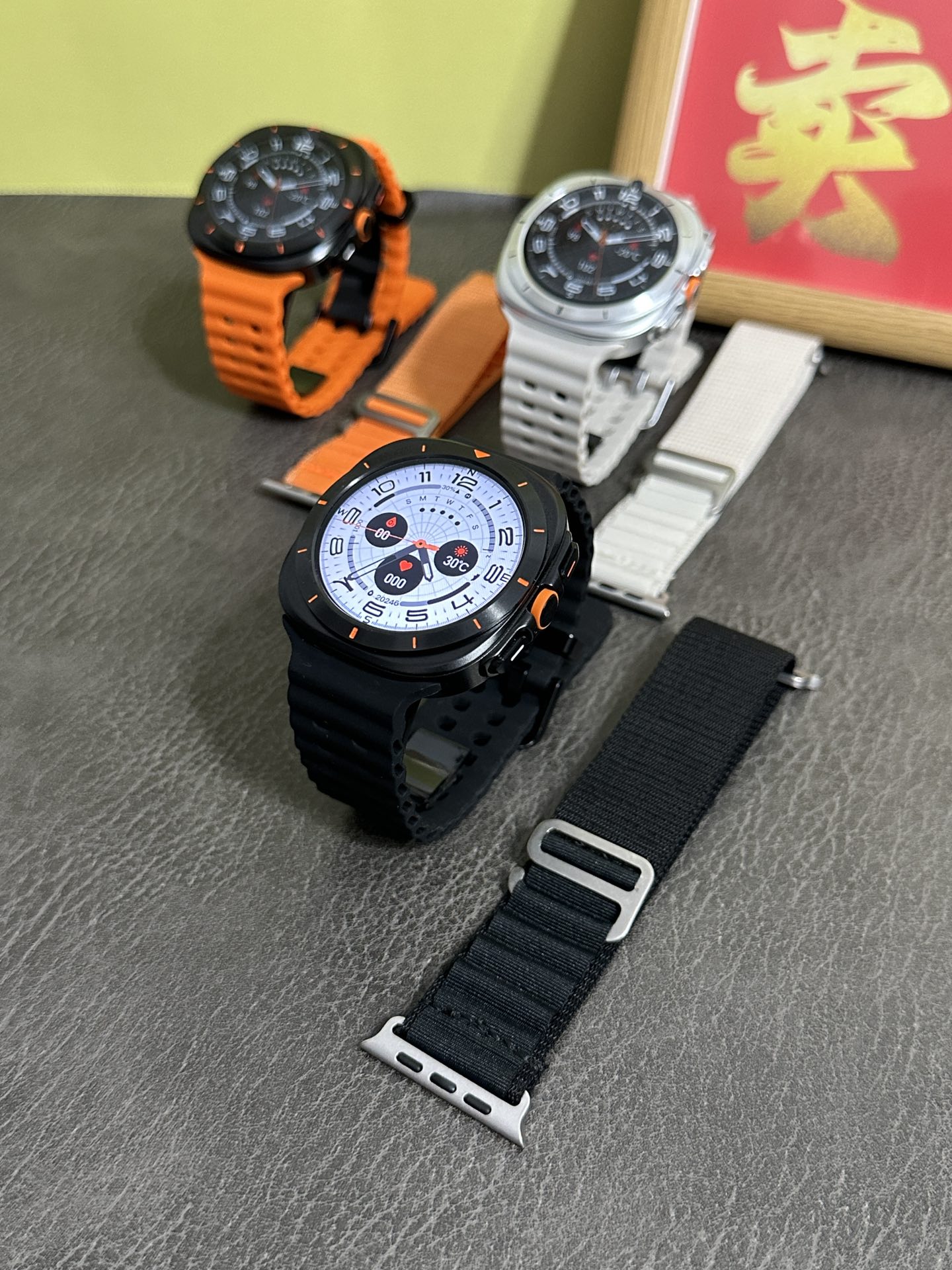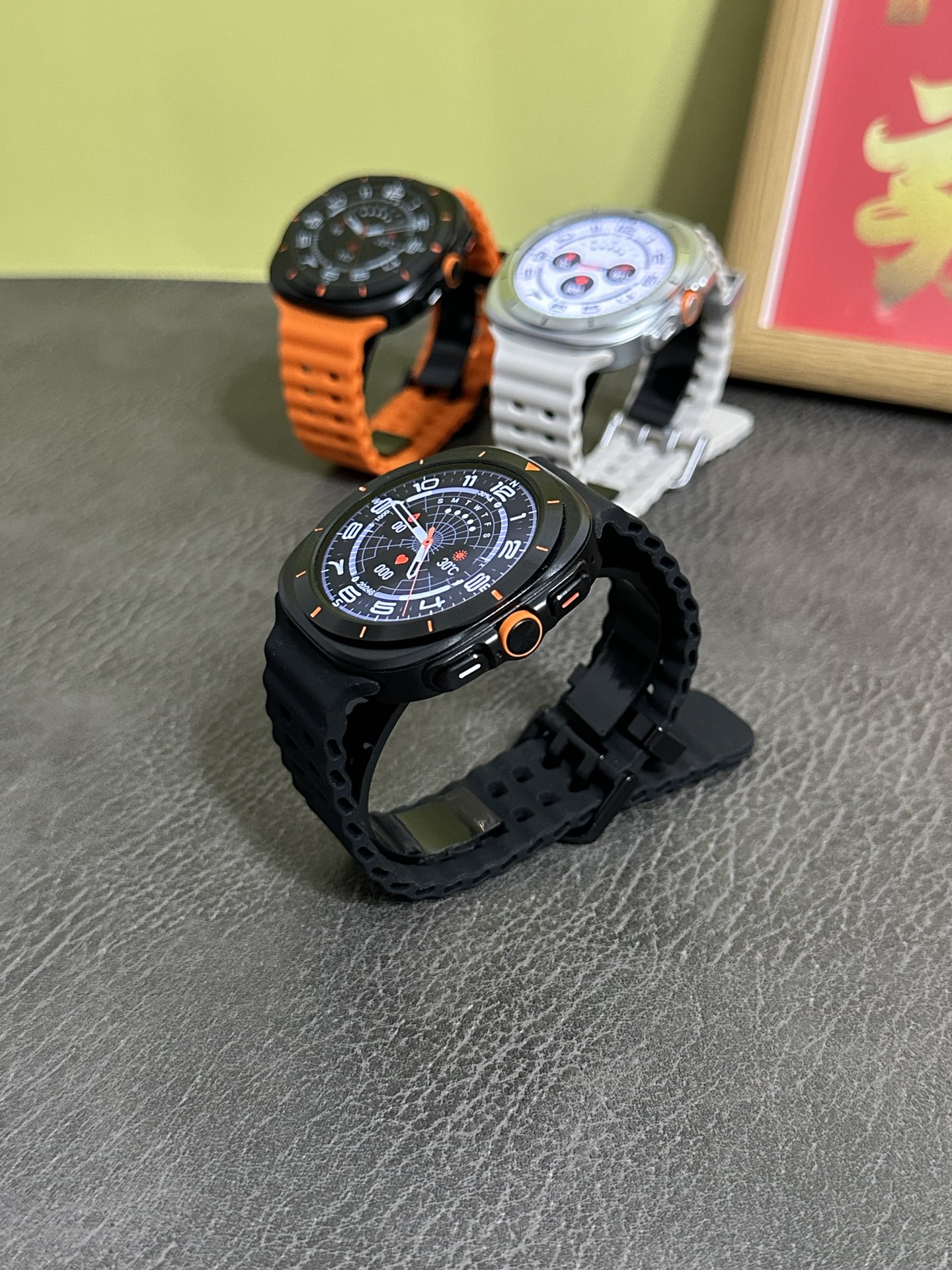 全新爆款 SAMSUNG三星 Galaxy Watch Ultra47mm智能手表‼️批💰260 47mm表盘 1.62超大屏 aomled屏 操作丝滑不卡顿 单蓝牙 一键连接,内存128mb 带微信/支付宝双支付绑定 可离线支付 新增 Chat GPT人工智能,带股市/功能 齐全颜色 可手机同步到手表 悬浮表盘 AI精美表盘/2.5D视觉动效.可放大缩小立体菜单 自带多个IU主题 真螺丝真卡扣,完美复刻 750mAh超大电池容量,超长待机 原装无线式充 带NFC门禁卡功能 带消息通知 可查看文字内容 带多个运动模式 活动记录 带音乐控制 视频控制 抬腕亮屏 盖手熄屏 带高德实时导航:文字+地图双模式 心率测试 血氧 血压 血脂 血糖 尿酸 体温 女士生理周期 睡眠测试 压力测试 可同步数据到苹果健康 带天气 日历 闹钟 秒表 指南针 计算机 梅脱 股市查看 可同步通讯录 自带小游戏 表盘颜色: 黑色,银色 标配表带款式:海洋硅胶带+高山回环 售后标准:表背面膜不撕 机身不刮花 表带不要有佩戴痕迹15天可退换、刮花有佩戴痕迹只保修 保修三个月‼️‼️
