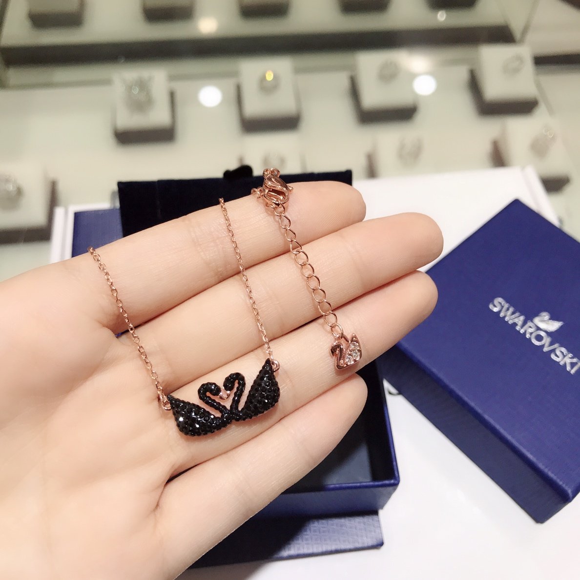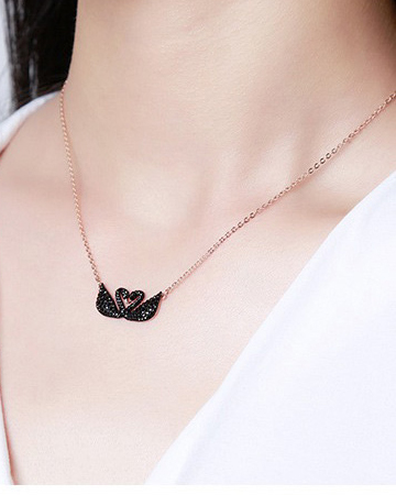 【520礼物】 💰70 🎈施华洛🎈黑色双天鹅 玫色项链 ICONIC SWAN 时尚精致 女项链送女友礼物!一生一伴,永沐爱河!