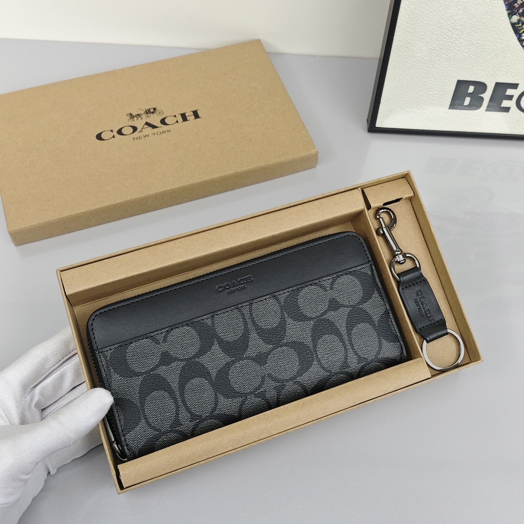 蔻驰男士钱包💰140 原单配钥匙扣 信用卡插槽,全长票据隔层,黄金尺寸,握持感极佳,原版PVC配牛皮。 规格:20*10cm