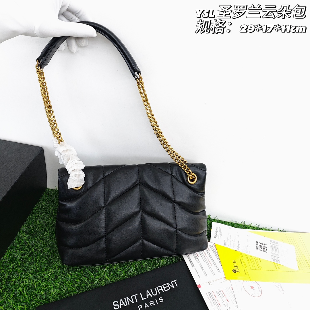 ysl圣罗兰云朵包💰300 进口小羊皮制作,手感柔软细腻,犹如怀抱云朵般的感受,经典的Y家logo链条及扣眼五金均采用拉丝金属材质,哑光雾面的质感及其别致,容量满足日常通勤。 规格:29*17*11cm