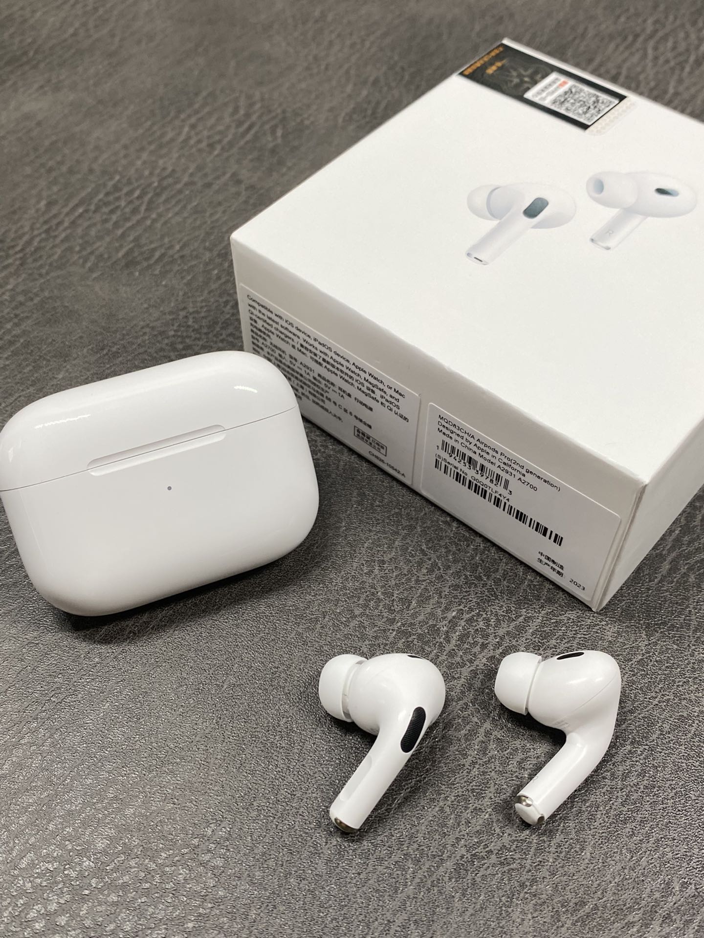 全新版本出货 💰280 AirPods pro第二代(简称五代)京东充正版‼️ 配京东全套配件 全新升级真实空间音频 头部跟踪真实功能❗️ 16.0以上系统不会显示无法验证❗️ 全网独家 降噪通透效果达100%❗️ 续航可达8-10小时 待机一个月以上❗️ 支持滑动调节音量 带原装蜂鸣器:充电音效 开盖音效 连接成功音效 长按解除配对音效 长按解除配对复位后音效 1562AE芯片 稳定性超高 售后率极低 原装壳料 完美美文缝 上手体验非常高级 16系统以上正常弹窗 蓝牙改名字 双捏切歌等操作 长按切换降噪通透模式 自带GPS定位查找 正品有的功能基本都有 真实ANC通透 降噪双模式 升级纽扣电池 实测听歌8-10小时 真石墨烯振膜喇叭 高频清脆低频有力 音质可秒杀所有版本 可验证iOS16.0以上系统 正常弹窗链接 安卓系统可链接❗️ ZP有的功能都有 完美复刻❗️ 下单标配:京东防伪码-京东发票-京东打包袋-无线充-挂绳-防丢绳-个性保护壳-飞机盒 售后服务:保修三个月 耳机外观没磨损支持退换‼️‼️