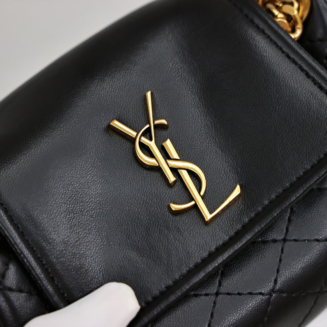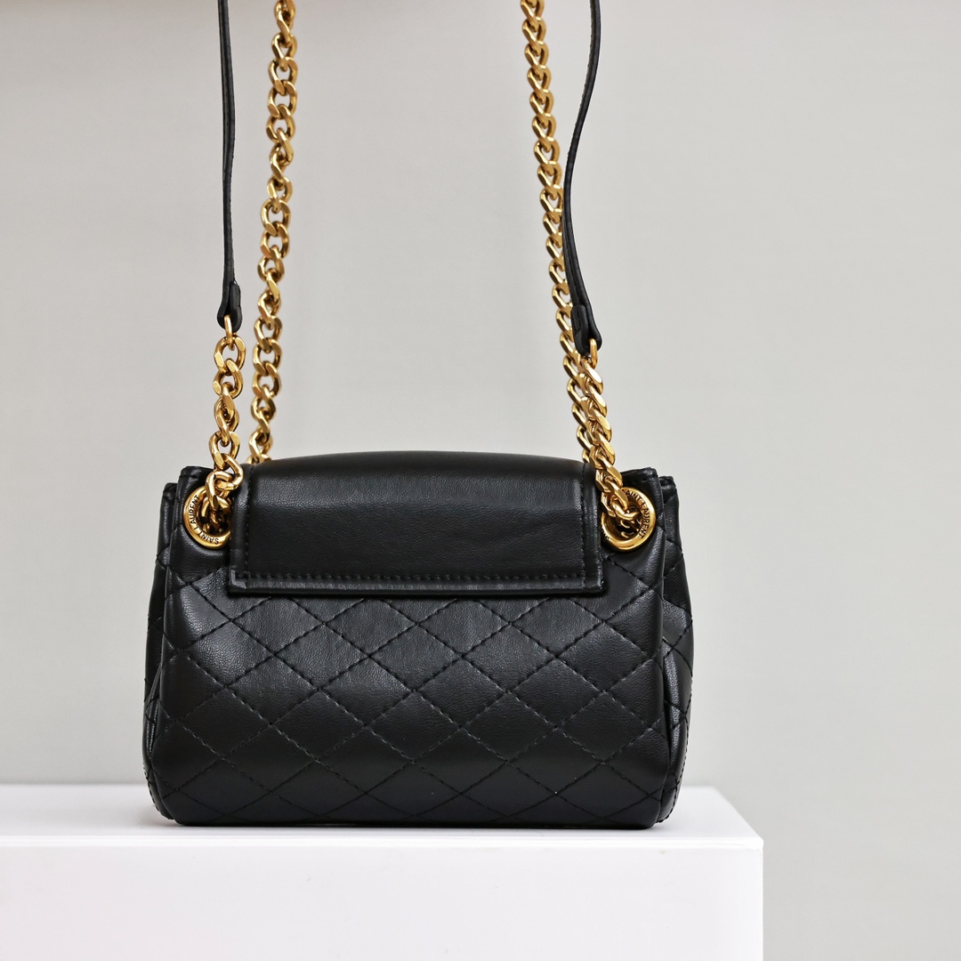 ysl mini nokita链条包💰260 前翻盖饰以金属联结ysl字母标志,搭配菱格绗缝设计,链条和皮革背带,可单肩/斜挎/腋下背法随意切换,内部主隔层一个平袋,新鲜感十足。 规格:18*13*6cm