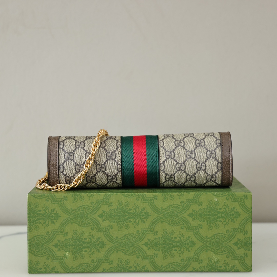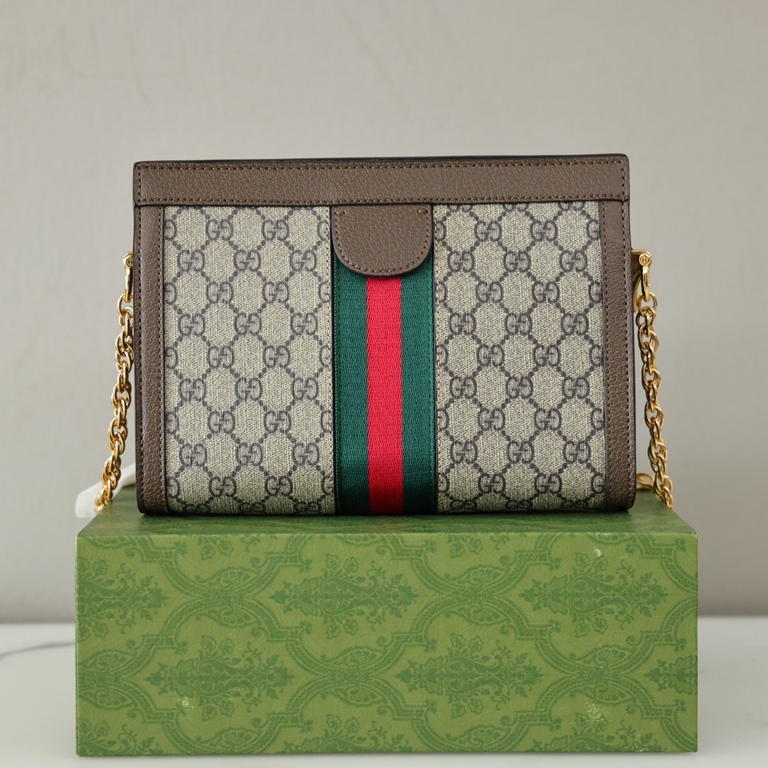 Gucci Ophidia链条包💰220 采用GGsupreme高级人造帆布,复古又经典,构造简约加上经典双G印花搭配,标志性条纹织带,原版五金链条,斜挎手拿随时转换,深受好评百搭。 规格:26*17.5*8cm