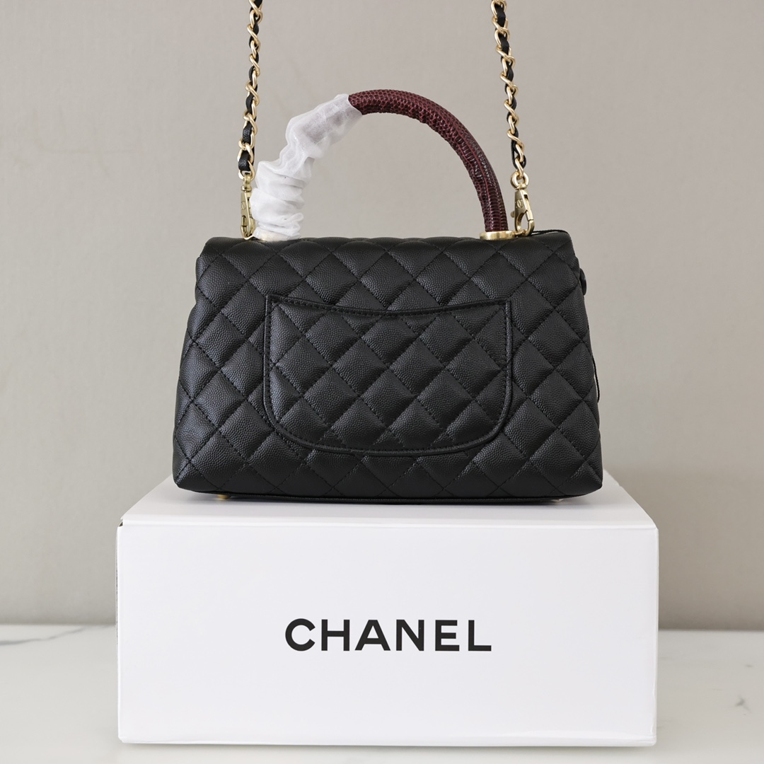 香奈儿Coco Handle手提包💰300 经典让你越看越迷人,款式与皮质相辅相成,蜥蜴皮手腕点缀整体造型提升奢华的视觉,驾驭任何场合都极致优雅。 规格:24*14*10cm