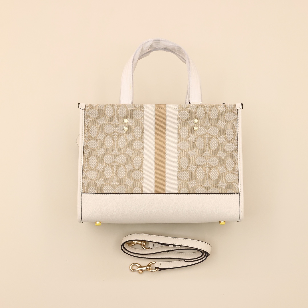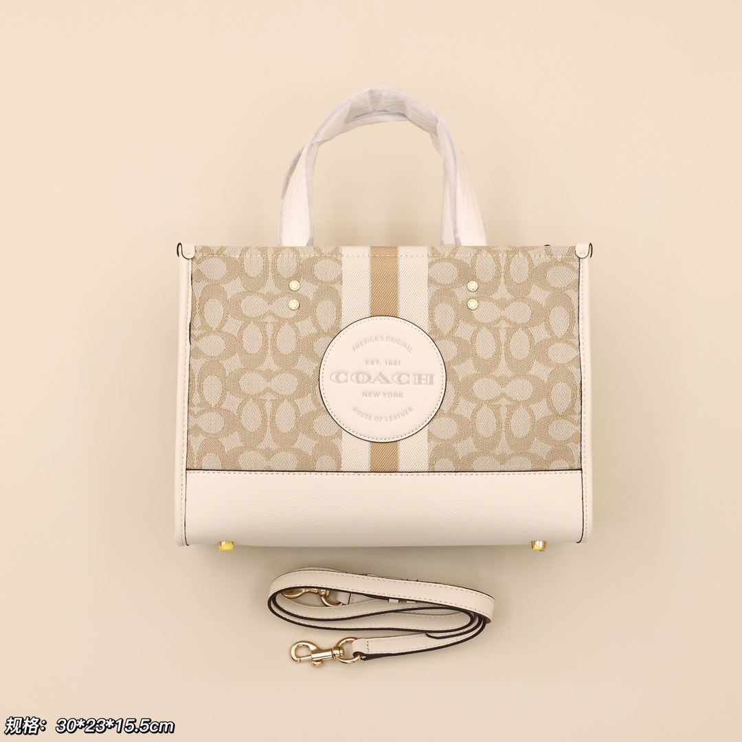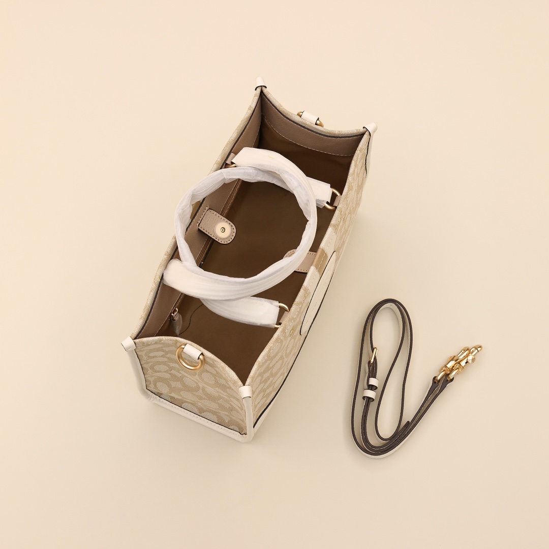 蔻驰横版托特包💰260 标志性CC帆布提花,饰有Coach徽章,中性色调可以适合任何穿搭,手提同时附带的肩带可肩背或斜挎,无论日常通勤还是度假出游都能轻松搭配。 规格:30*23*15.5cm